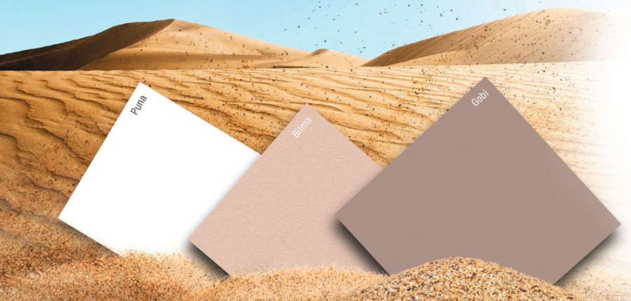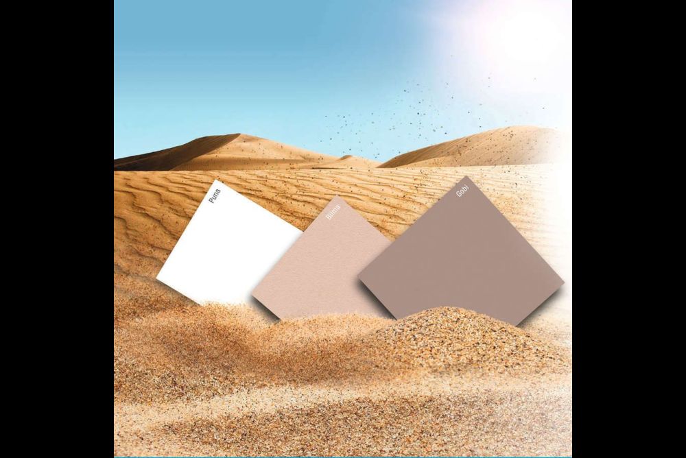 Die Kollektion «Supermatt Fenix NTM» von Formex wird durch drei neue Eigendekore «Puna», «Bilma» und «Gobi» ergänzt. Die Namen stehen für zwei Oasen und eine Wüste und widerspiegeln die puristische Schönheit der drei neuen Dekore. Erhältlich ist «Supermatt» im Farbverbund als Verbundplatte, Vollkernplatte, Kunstharz und in verschiedenen Kantenausführungen. Das Sortiment kann zudem als 10-mm-Sichtseite namens «Fineline Supermatt Fenix NTM» bezogen werden. «Fineline» ist im Format 2800 × 1300 × 10 mm ab Lager verfügbar.