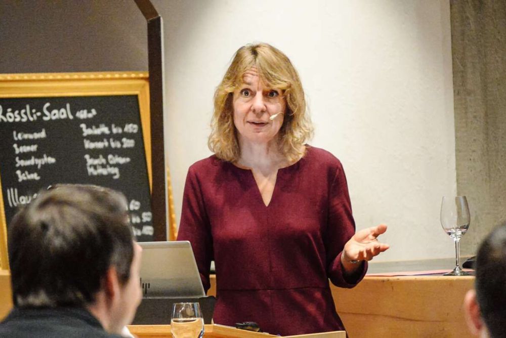 Juristin Katia Favre setzte die Schreiner und Schreinerinnen über das neue Datenschutzgesetzins Bild. Bild: Chantal Kunz