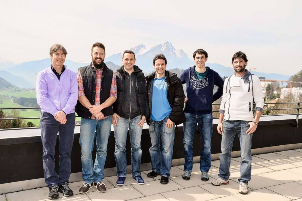 Tessiner auf dem Bürgenstock (v. l.): Luca Pedrotta (Coach), Francesco Riva, Stefano Delorenzi, Christian Guerra, Carlo Bassi, Ronnie Tunzi. Bild: Monika Albertalli