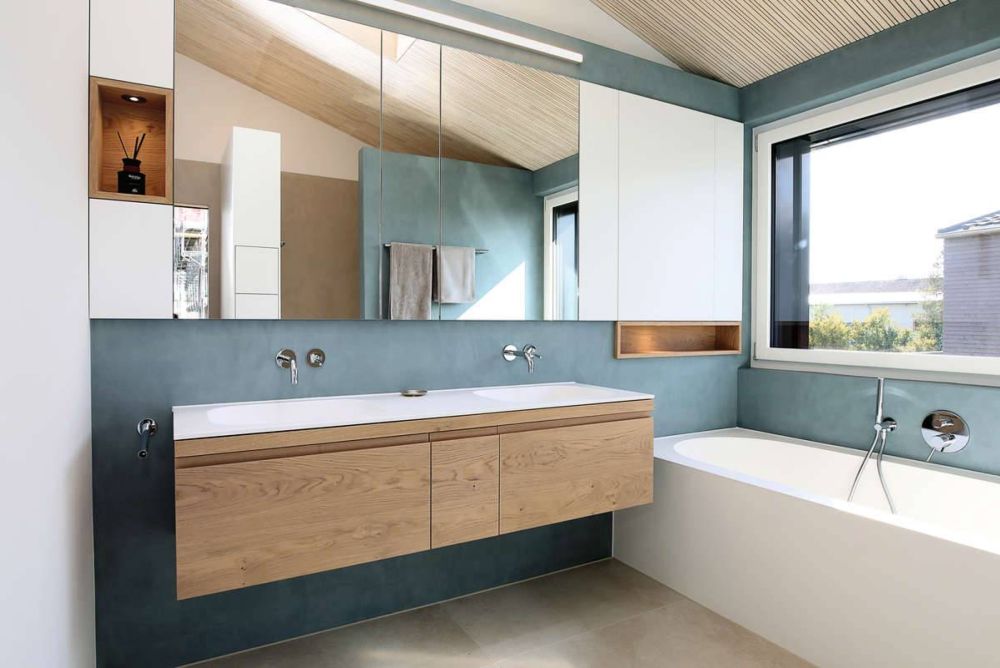 Einblicke. Der Sprung ins Bad lohnt sich für Schreinereien auf jeden Fall. Die Beliebtheit des Raums schafft eine grosse Nachfrage nach einzigartigen Ausstattungen. Und sie macht die Badezimmergestaltung zum Heimspiel für Schreiner, weil sie die Wünsche erfüllen können.