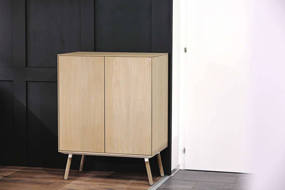 Wenn das Bad immer mehr zum Wohnraum wird, warum soll nicht auch die Stube zum Badezimmer werden? Diese Frage stellte sich die Grossschreinerei Loosli in Wyssachen BE anlässlich ihres 60-Jahr-Jubiläums vor zwei Jahren. Herausgekommen ist «Otto», das wandelbare Badmöbel. Der Kubus ist nur 800 mm hoch, 800 mm breit und 500 mm tief. «Wir konzipierten das Möbel für all jene Einsatzorte, wo die verschiedenen Nutzungen verfliessen», sagt Emanuel Hausammann, Projektentwickler bei der Loosli Badmöbel AG. Die Badmöbel seien in den vergangenen Jahren immer wohnfähiger geworden. «Otto» gehe noch einen Schritt weiter und könne zum Beispiel eine Lösung darstellen für Einzimmerwohnungen oder für Hotelzimmer. Das Möbel ist aus MDF, furniert mit geseifter Eiche. Das Becken steht auf einer Corian-Abdeckung. Für die Klappe verwendete man einen «Aventos HK»-Beschlag von Blum.