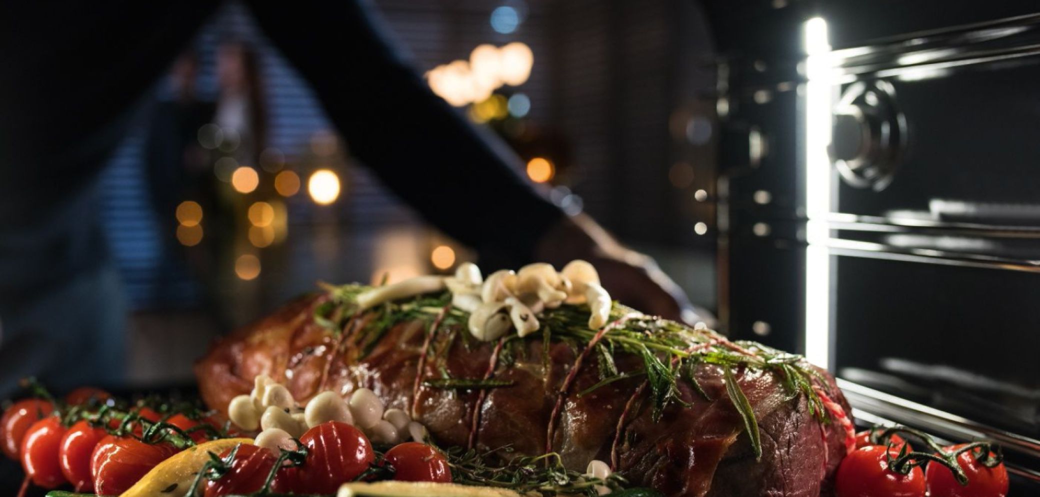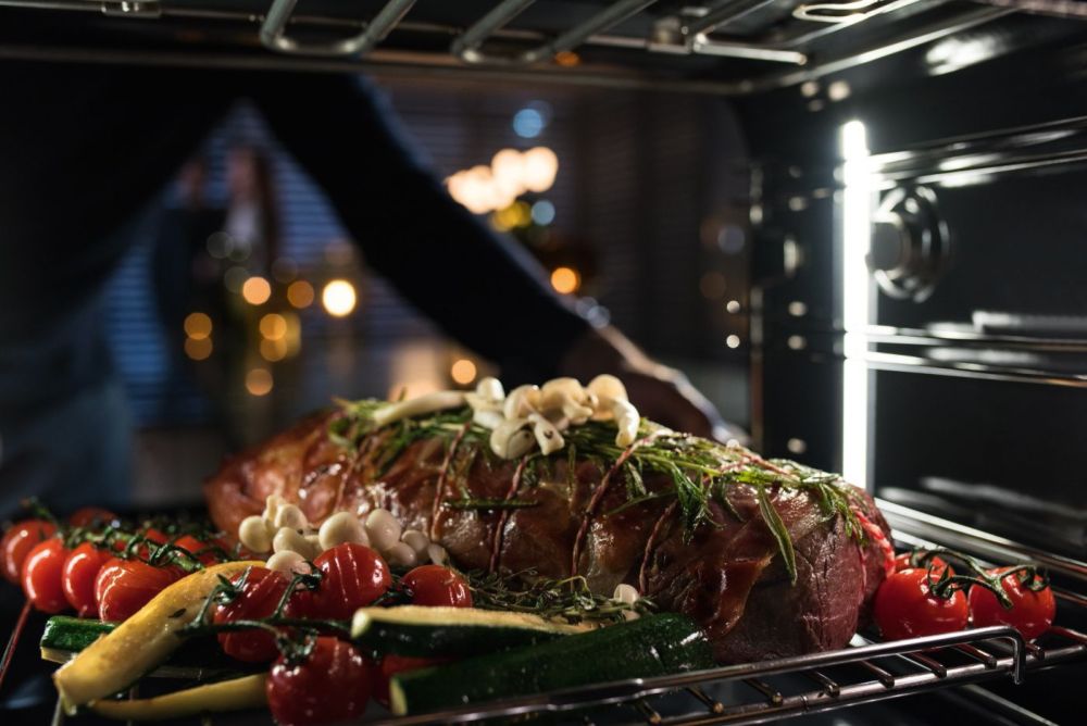Ein Braten auf dem Gemüsebett gelingt im Dialoggarer in einem Durchgang, ohne dass das empfindliche Gemüse übergart wird. Bild: Miele
