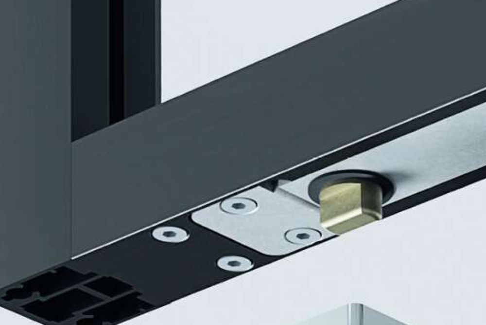 Das fängt schon damit an, dass zunächst zu klären ist, wie viele Elemente in welcher Form beweglich sein sollen und in welcher Ausprägung. Bei ausladend öffnenden Schiebeelementen etwa kommt unter Umständen ein ganzes Paket an Flügeln zusammen. «Die wiegen dann vielleicht 400 Kilos und hängen zusammengeschoben alle auf einer Stelle von 1,5 Metern Breite. Mit dem jüngsten System von Rimadesio sind Flügel von bis zu 140 Kilos möglich», sagt Della Torre. Die Profile für Schiebeelemente brauchen deshalb auch etwas Platz. Die Schienen gibt es verdeckt als Einbauvariante, als Aufbauschiene und für die Wandmontage. Das Prinzip ist dabei stets das Gleiche. Die Schiene, die den Laufwagen aufnimmt, wird im Profil der Montageschiene befestigt. So bleibt diese frei zugänglich und tragfähig. Eine Revision des kugelgelagerten Schiebewagens ist zudem so jederzeit gut möglich.