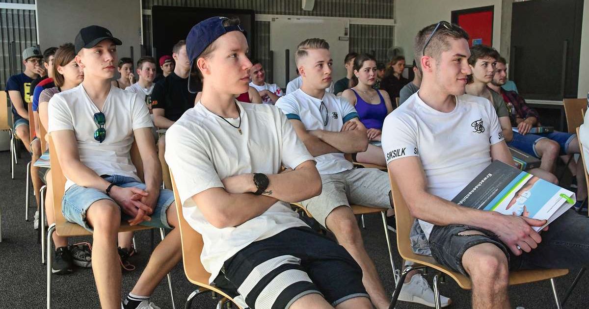 Aufmerksam folgen die angehenden Berufsleute den Ausführungen von Präsident Heinz Fehlmann. Bild: Werner Lenzin
