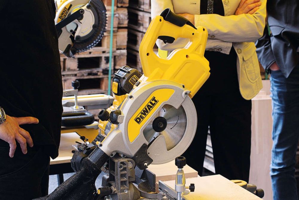 Die «54V XR Flexvolt»-Akku-Paneelsägen von Dewalt nehmen es mit kabelbetriebenen Geräten auf. Die beiden 54-V-/108-Wh-Akku-Paneelsägen «DCS777» und «DCS778» laufen mit dem neuen 54-V-Lithium-Ionen-Akku und sind aufgrund ihrer kompakten und laut Hersteller leichten Bauweise ideal für die Montage geeignet. Dabei bringen die beiden neuen Paneelsägen die gleiche Leistung wie ihre kabelgebundenen Pendants «DWS 777» und «DWS 778». So schafft die «DCS777» mit einer Akku-Ladung bis zu 182 Schnitte in Weichholz (50 × 75 mm) oder 105 Schnitte in Buche (30 × 200 mm). Ihre maxi- male Schnittkapazität beträgt 270 × 60 mm bei der «DSC777» und 305 × 85 mm bei der «DCS778». Die bereits von den Kabelmodellen bekannte Gehrungs- und Neigungsschnellverstellung mit Edelstahlskala und Fixrasten für Standardwinkel ermöglicht ein komfortables Arbeiten. Dabei stehen die Fixpunkte 0°, 15°, 22,5°, 30° und 45° sowie die Schnellverstellung bis 50° zur Verfügung.