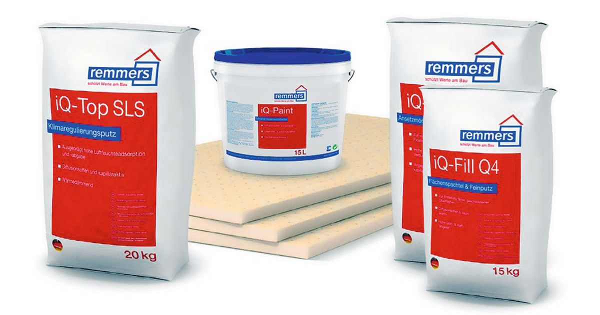 Das Saniersystem wirkt auch wärmedämmend. Die Feuchtigkeit wird über die Kapillarität des Systems aufgenommen, zwischengespeichert und in Zeiten niedriger Luftfeuchte schnell und effektiv wieder abgegeben. Punktuell anfallende Feuchtigkeit im Bereich von Wärmebrücken kann nach einer Sanierung praktisch ausgeschlossen werden und damit auch das Schimmelpilzwachstum. Das System besteht aus den 30 mm dicken «iQTherm»-Platten und dem kapillarleitfähigen Spezialspachtel «iQ-Top SLS».