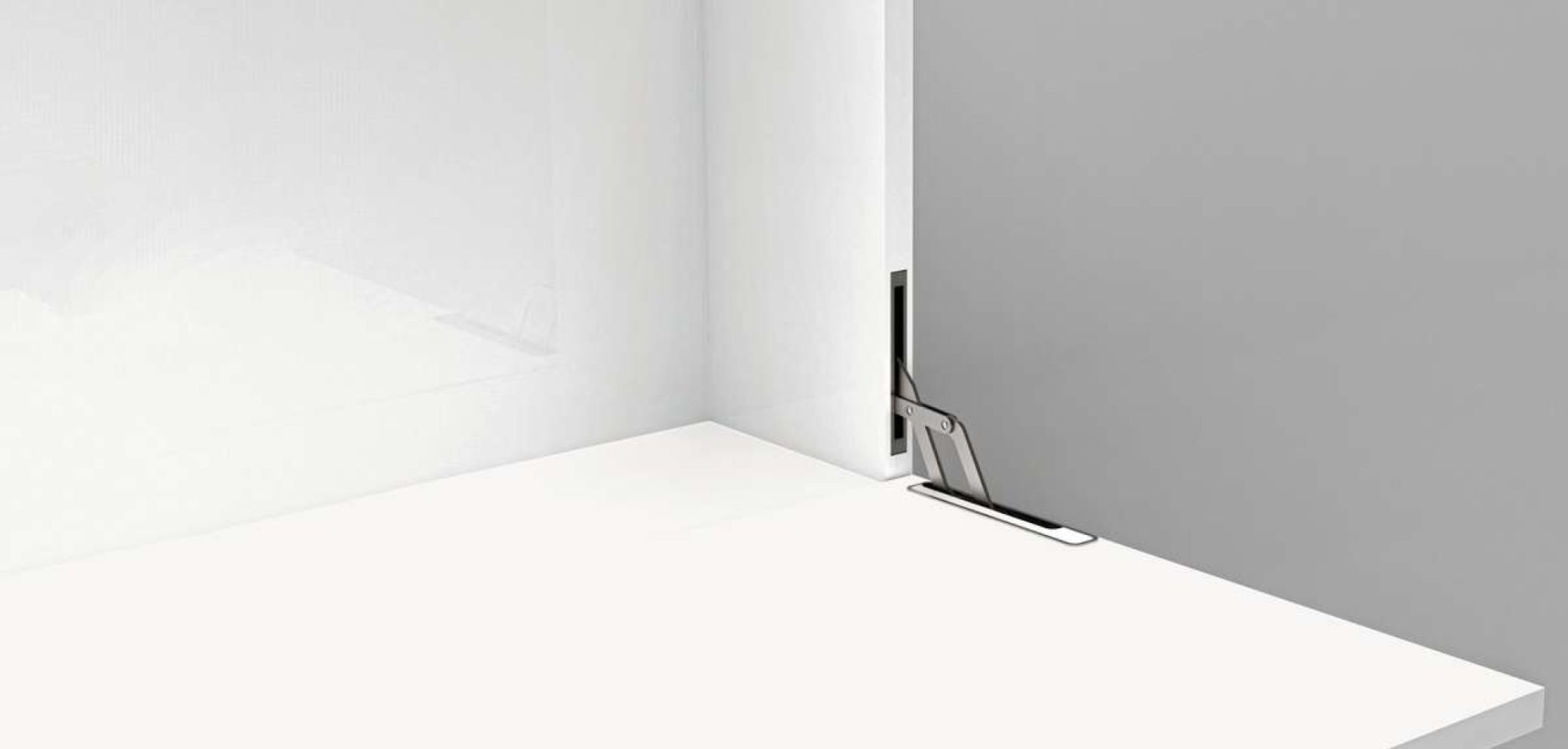 In dem Barfach-Klappenbeschlag «Unico» von Effegibrevetti sind alle gewohnten Funktionen vereint. Sanftes Öffnen und Schliessen gehen einher mit der Möglichkeit, das 15 Millimeter dicke Gehäuse auch vollständig in die Korpusseite einzulassen. Weitere Scharniere benötigt der Beschlag nicht, was gerade bei der Klappe nach unten öffnend ein gewichtiges Argument ist. Für den in alle Richtungen einstellbaren Beschlag für Frontstärken ab 18 Millimeter gibt es neben der Nickeloberfläche nun auch eine dunkle Ausführung. Im Programm des Erfinders des Seilklappenbeschlages findet sich ein Eckband, welches auch in dunkler Optik und als Variante für Aluminiumrahmentüren verfügbar ist. Besonderheit hier ist die Ausführung des Beschlages für Türen von bis zu 30 Kilogramm Flügelgewicht. Das gebürstete Edelstahlfinish unterstützt diesen Eindruck.