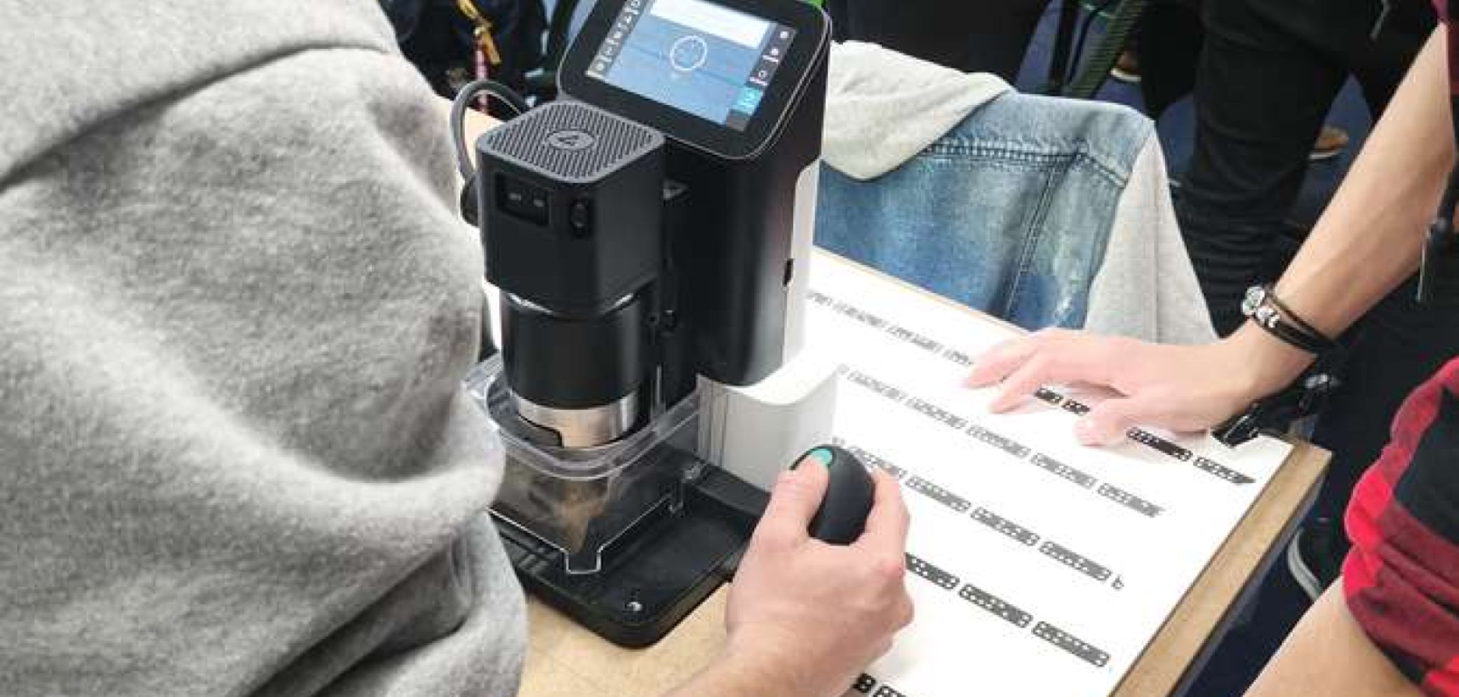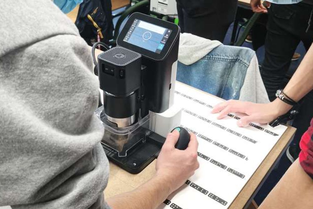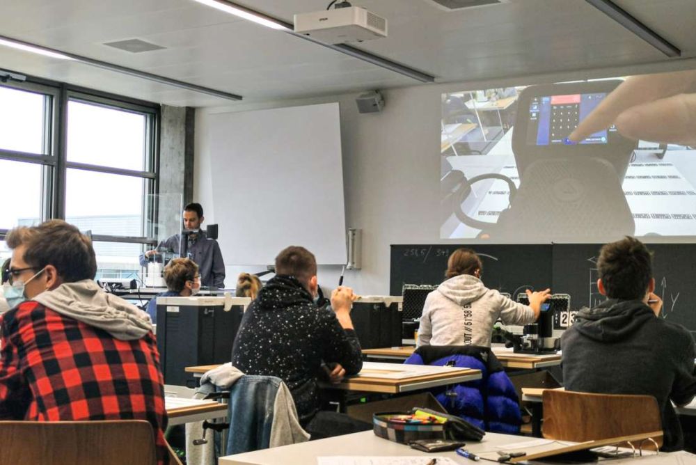 Lernende in Lenzburg arbeiten im Unterricht mit der neuen mobilen CNC von Shaper Tools. Bild: Nicole D'Orazio