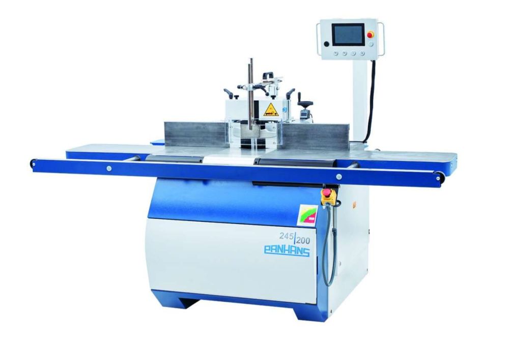 Die Schwenk-Fräsmaschine der Baureihe 245/200 aus dem Hause Panhans ist nur mittels personalisiertem Chip in Gang zu setzen, was einer unautorisierten Verwendung vorbeugt. Zum Bearbeiten sehr grosser Werkstücke besteht die Möglichkeit, alle nicht benötigten Elemente hinter die Maschine zu schwenken, sodass nur noch die Frässpindel aus dem Tisch ragt. Das zentrale Bedienelement mit Touchscreen lässt sich in diesem Fall an der Vorderseite der ausziehbaren Rahmenauflage einhängen und bleibt damit jederzeit bequem erreichbar. Der Fräsanschlag 301 ermöglicht die Gesamtverstellung über ein Handrad und eine Teilverstellung des Anschlags über eine Sterngriffschraube. Die nicht auswechselbare Frässpindel mit 30 Millimetern Durchmesser ist mit einer Fräser-Schnellspanneinrichtung ausgestattet. Optional kann auch ein Schnellwechselsystem HSK-80 geordert werden. Panhans-Maschinen werden in der Schweiz über die Arthur Bründler AG im luzernischen Ebikon vertrieben.