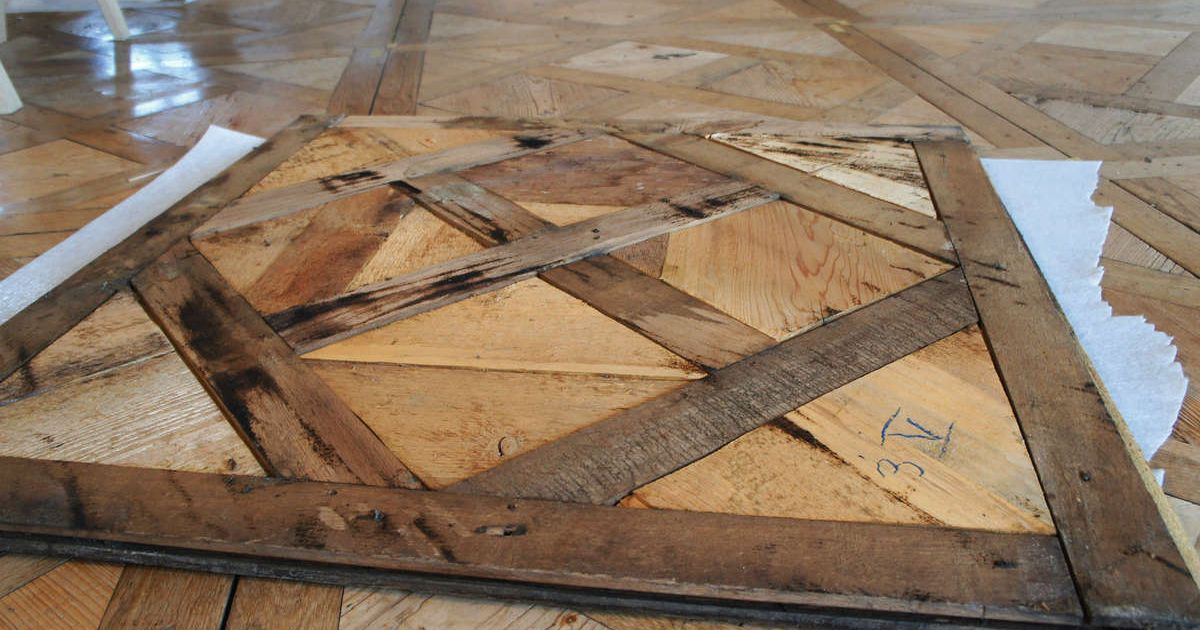 Der Verlegestart erfolgte mit der raummittigen, diagonalen Tafelachse – dieses Verfahren wurde übrigens von den heutigen Restauratoren ebenfalls wieder angewendet. Die ausgerichteten Tafeln wurden mit den handgeschmiedeten Eisennägeln sichtbar auf dem Blindboden befestigt. Nachdem die gesamte Fläche beschlagen und durch einen umlaufenden Rahmenfries mit Füllungseinlagen abgeschlossen war, erfolgte das Schlichten und Glätten der Holzoberfläche.