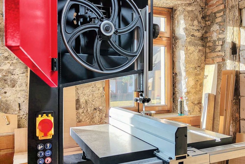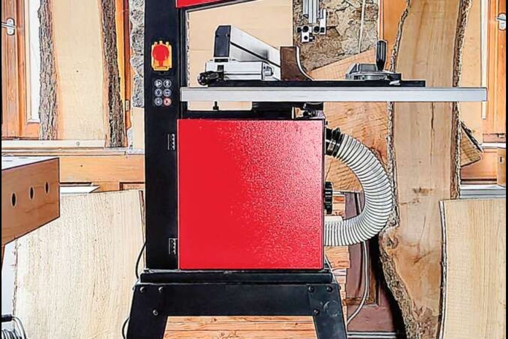 Ergänzend zum Beitrag in der SchreinerZeitung 51/52 hier weitere Fotos und Erkenntnisse vom Test der Maschine, die Bandsäge und Dekupier-Bandsäge in einem ist.