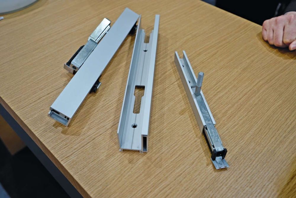 Die Schiebebeschlag-Spezialisten haben auch in Sachen Wandtaschen von Schiebetüren weitergedacht: Dank vormontiertem Aufnahmeprofil kann die Laufschiene der «80 B Pocket» über spielfreie Bajonettverschlüsse jederzeit einfach ein- und wieder ausgebaut werden. Die Einstellung der Türposition zum Schienenpuffer ist somit einfach. Weil sich der Drehpunkt der taschenseitigen Aufhängung bei der Montage direkt an der Türkante befindet, fährt die Tür zum Abschluss der Montage auch noch besonders leicht in die Wandtasche ein.