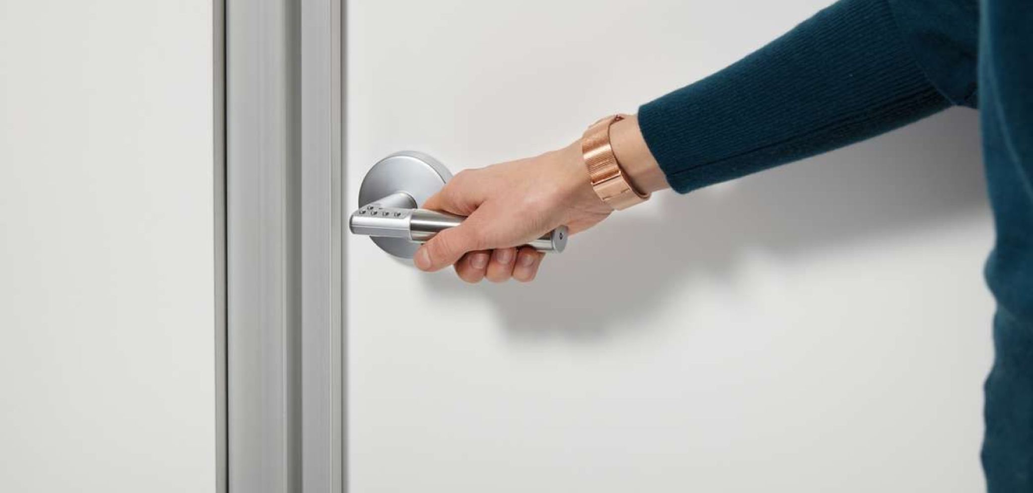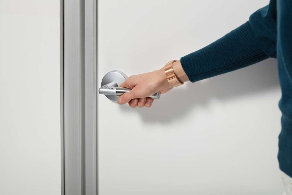 «Code Handle» bietet einen Mastercode und bis zu neun unterschiedliche Pins für Anwender. Nach dem Schliessen der Tür verriegelt er sich immer selbst, auch wenn das Abschliessen vergessen wird.