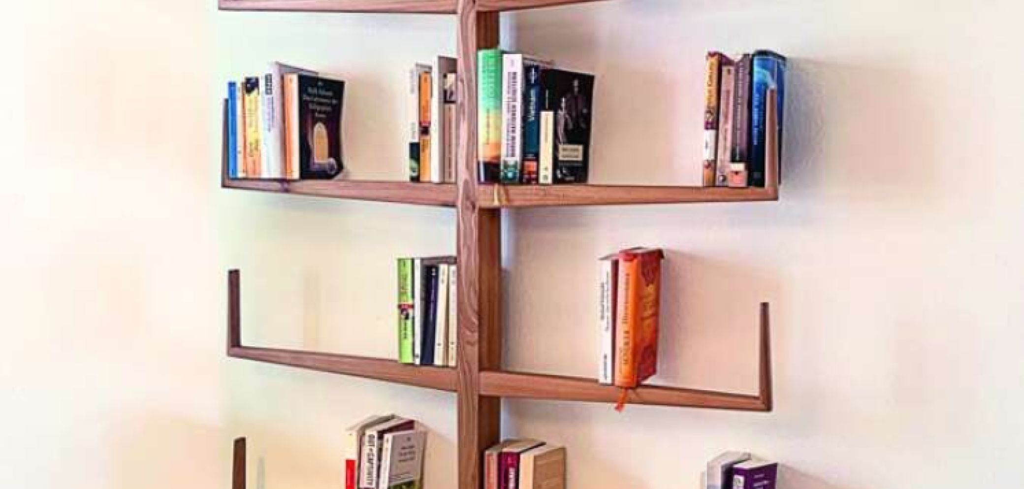 Das Bücherregal von Stöckli Design ist aus übrig gebliebenem Ulmenholz gefertigt. Bild: Stöckli Design