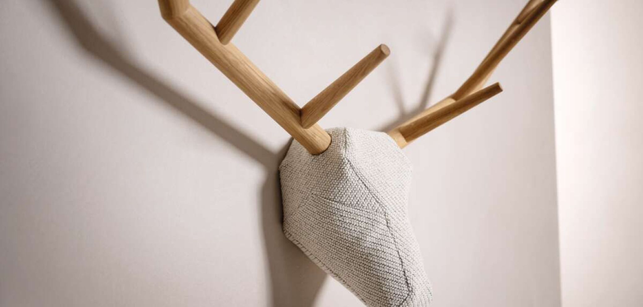Vor gut zehn Jahren hat Schreiner Baptiste Ducommun sein Label Klybeck in Basel gegründet. Es zeichnet sich durch fast poetische Entwürfe aus. In idealer Weise verkörpert dies die skulpturhafte Wandgarderobe «yy» in Gestalt einer Jagdtrophäe. Der Hirsch zieht die Blicke auf sich, ist aber im Verhältnis zum echten Geweih angenehm gerundet und hat eine weiche, textile Kopfpartie.