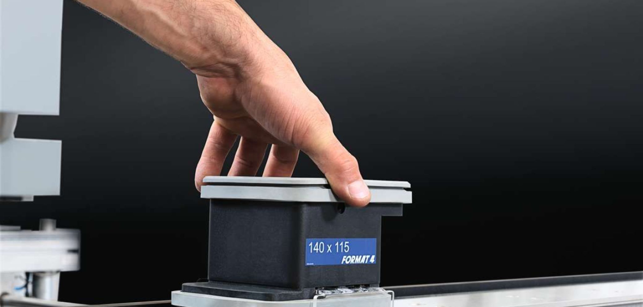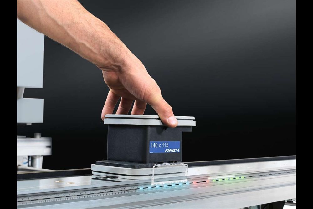 Alle Leuchtdioden sind in einem skalierten Aluminiumprofil angebracht. Auf Knopfdruck zeigen sie durch die Bearbeitungsinformationen, die in der Maschinensoftware hinterlegt sind, exakt an, welche Sauger wo positioniert werden müssen. Präziser, schneller und übersichtlicher als bei herkömmlichen Systemen können nun alle notwendigen Spannmittel im Arbeitsfeld positioniert werden.