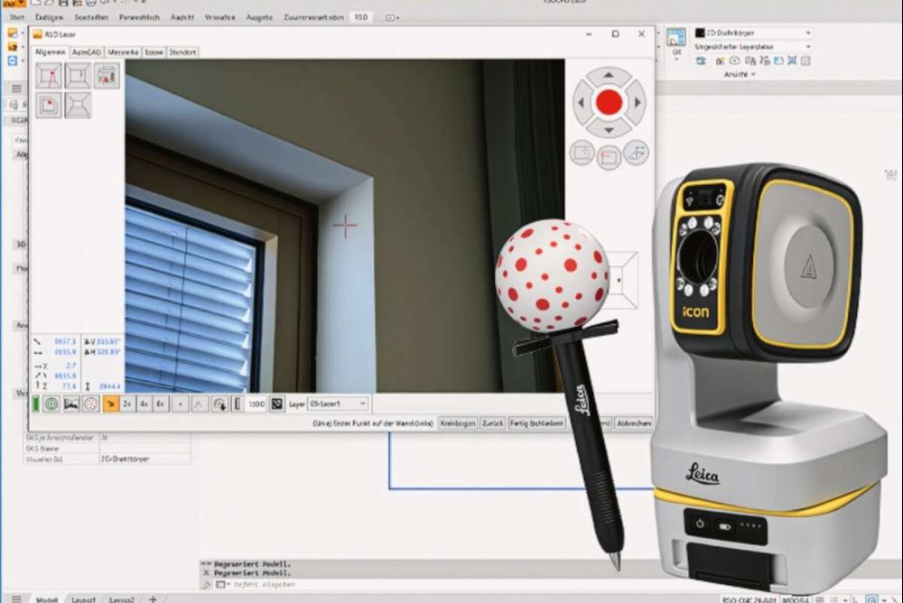Besonders effizient ist das Aufmass mit dem «Leica iCON iCS50» direkt in «RSO-CAD»: Damit werden Räume von nur einer Person in Minuten millimetergenau erfasst. Dank Schnellspannhalterung und automatischer Selbstnivellierung ist das Gerät schnell einsatzbereit. Die Messdaten werden unmittelbar in der Zeichnung sichtbar, wodurch Fehlerquellen minimiert und die Planung deutlich beschleunigt werden. Über den Laserdialog in «RSO-CAD» wird der Laser auf bestehende Projekte ausgerichtet oder neue Raumaufmasse gestartet. Panoramabilder und ein Live- stream ermöglichen eine präzise Steuerung des Lasers. Die präzisen Messreihen erleichtern die Fertigung passgenauer Arbeitsplatten und die Montage von Frei- formelementen, wobei Montagepunkte punktgenau aus der Zeichnung an die Wand projiziert werden. Mühsame Schablonen gehören so der Vergangenheit an.