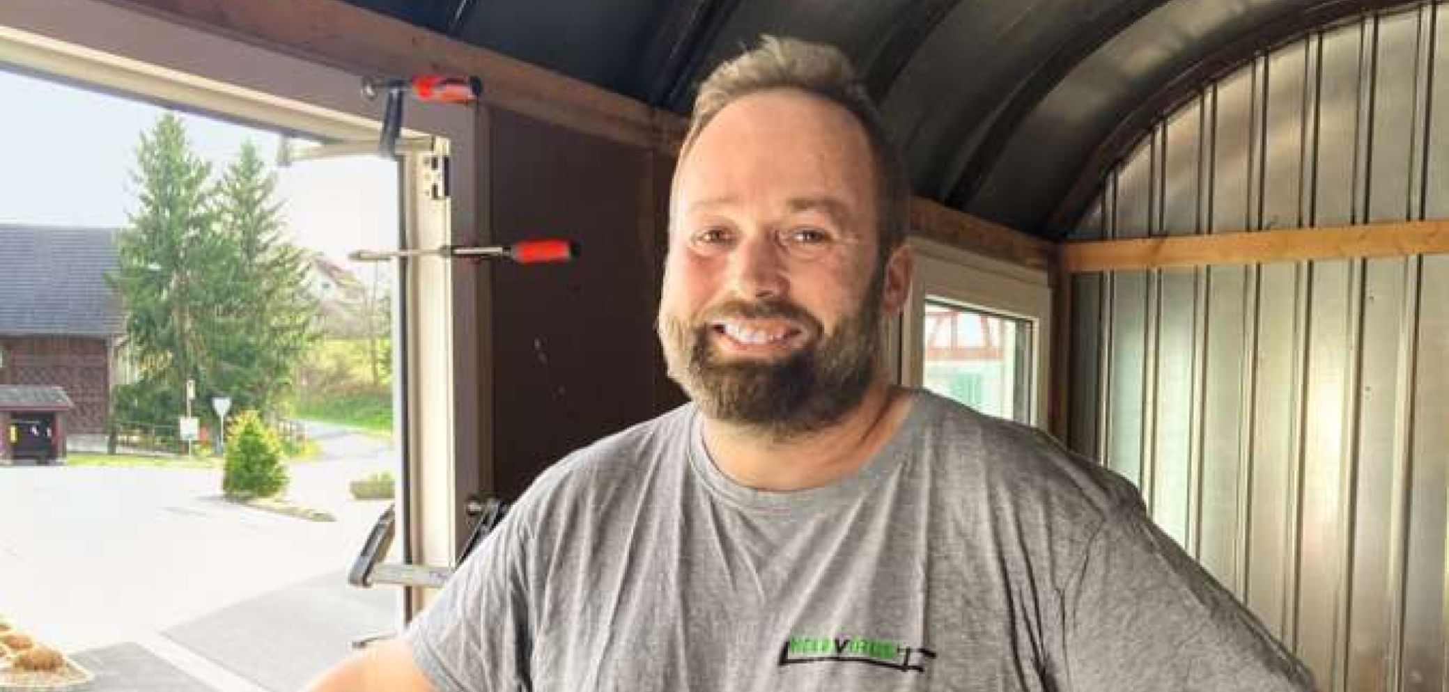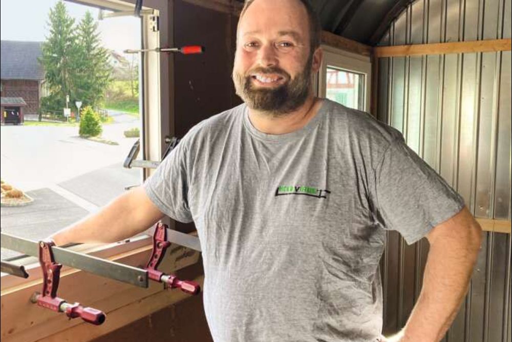 Peter Pfeiffer fixiert eine Fensterfassung mit Schraubzwingen an einem aufgeständerten Bauwagen. «Wir richten ihn als Wohnwagen für einen Kunden», erklärt er. Danach geht er von seiner Baustelle hinüber zu seinem Wohnhaus in Uesslingen-Buch TG. Dort schaut er nach seinen drei kleinen Kindern; die Älteste ist noch in der Schule. Seine Frau arbeitet Vollzeit als Transportdisponentin. Erwerb und Kinderbetreuung gehen im Alltag des gelernten Landwirts Hand in Hand. «Das ist eine Herausforderung, aber ich möchte diese Lebensweise nie mehr hergeben», sagt der 41-Jährige. 2021 hat er sich mit zwei Kollegen unter dem Firmennamen «Holzvirus» selbstständig gemacht – nach einem abenteuerlichen Berufsweg. Der im Kanton Zürich aufgewachsene Pfeiffer verbrachte seine Kindheitssommer auf der Alp. Spielsachen, wie seine Kinder sie haben, gab es dort keine. Die Kleinen stellen während des Gesprächs neugierig Fragen und wenden sich dann wieder ihrem Spiel zu. Wie Pfeiffer auch, der als Junge aus Fundholz Flugzeuge fertigte; die Flügel befestigte er damals mit Harz. «Seit ich denken kann, arbeite ich mit meinen Händen.» Seine Vorfahren und jene seiner Frau waren in der Land-, Holz- oder Forstwirtschaft tätig. Nach der Ausbildung zum Landwirt kam er 2005 als Betriebshelfer in den Thurgau – und blieb. Es folgten mehrere Jahre Temporärarbeit im Bauwesen, anschliessend zehn Jahre im Eventbau, davon sieben als Chefmonteur. Während sechs Jahren lebte er im Wohnmobil, bis er seine spätere Frau kennenlernte. Gemeinsam zogen sie kurzzeitig in eine Wohnung, was ihm zu beengt war.