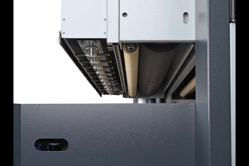 Interessant sind auch die Bürstenvorrichtungen und das Turbo-Rotationsreinigungsgebläse bei Felder, das bei der HM Spoerri AG in Bachenbülach ZH erhältlich ist. Nach dem eigentlichen Lackschliff sorgen sie bei der «Findustry-Serie» dafür, dass die Oberfläche sogleich bereit ist für den nächsten Bearbeitungsschritt. So kann direkt der nächste Beschichtungsgang vorgenommen werden. Nebst der gründlichen Beseitigung vom Schleifstaub durch das Reinigungsaggregat kann ein Ionisierungsbalken auch die elektrostatische Aufladung verringern.