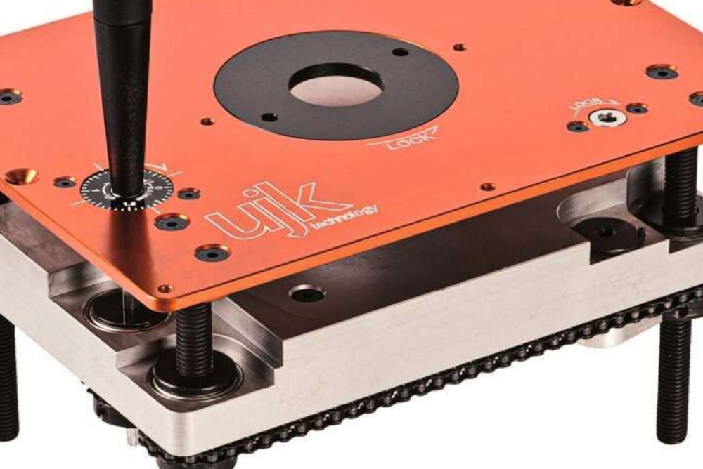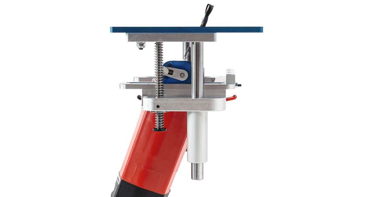 Mit einem Oberfräsenlift lässt sich die Höhe des Fräsers präzise einstellen. Manche lassen sich sogar schwenken. Bild: Sautershop