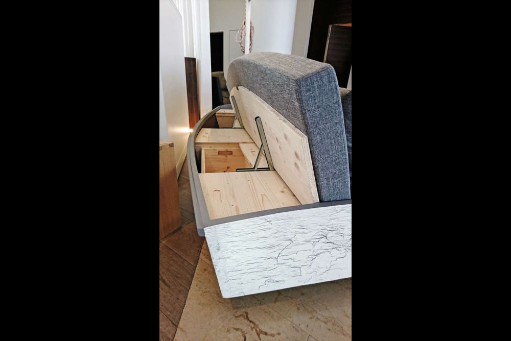 Alles begann, als Lars Weber bei der Internetrecherche zum Wettbewerbsthema auf das Bild eines alten Segelboots stiess. Dieses erinnerte ihn an seine eigene Optimisten-Jolle. Das kleine und leichte Segelboot hat nur einen Mast und ist für Jugendliche bis circa 15 Jahre geeignet. «Also entschied ich mich, mein altes Segelboot in ein Bettsofa umzubauen», erzählt der 17-jährige Lernende im 2. Lehrjahr bei der Schreinerei Albert Speck AG in Oberwil ZG.