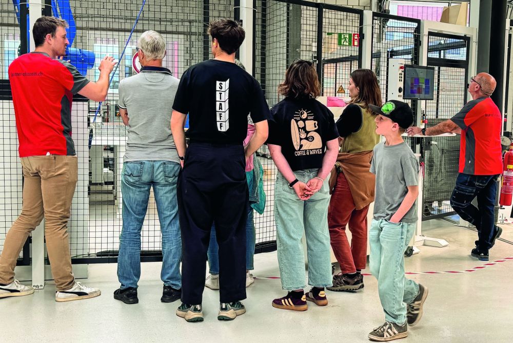 Besucherinnen und Besucher schauen sich die neue Produktion der R. Brunner AG an. Bild: PD