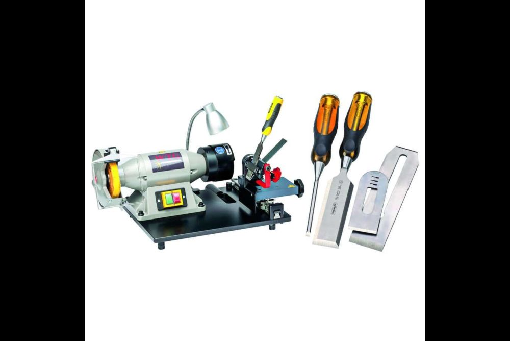 Die Schärfmaschine WTG-1 der Berger Technologie GmbH ist in den letzten sieben Jahren stetig weiterentwickelt worden. Zum Schärfen werden die Präzisionswerkzeuge mittels optimierter Spannvorrichtung mit rechtwinkligem Anschlag an den Schleifstein herangeführt. Der Keilwinkel kann stufenlos eingestellt werden. Optional ist eine Schnellverstellung erhältlich. Die kugelgelagerte Werkzeugführung mit Hochleistungslaufschlitten garantiert eine gerade Schneide. Stech- beitel oder Hobeleisen sind über den gesamten Vorgang hindurch gut sichtbar, was die Handhabung vereinfacht.