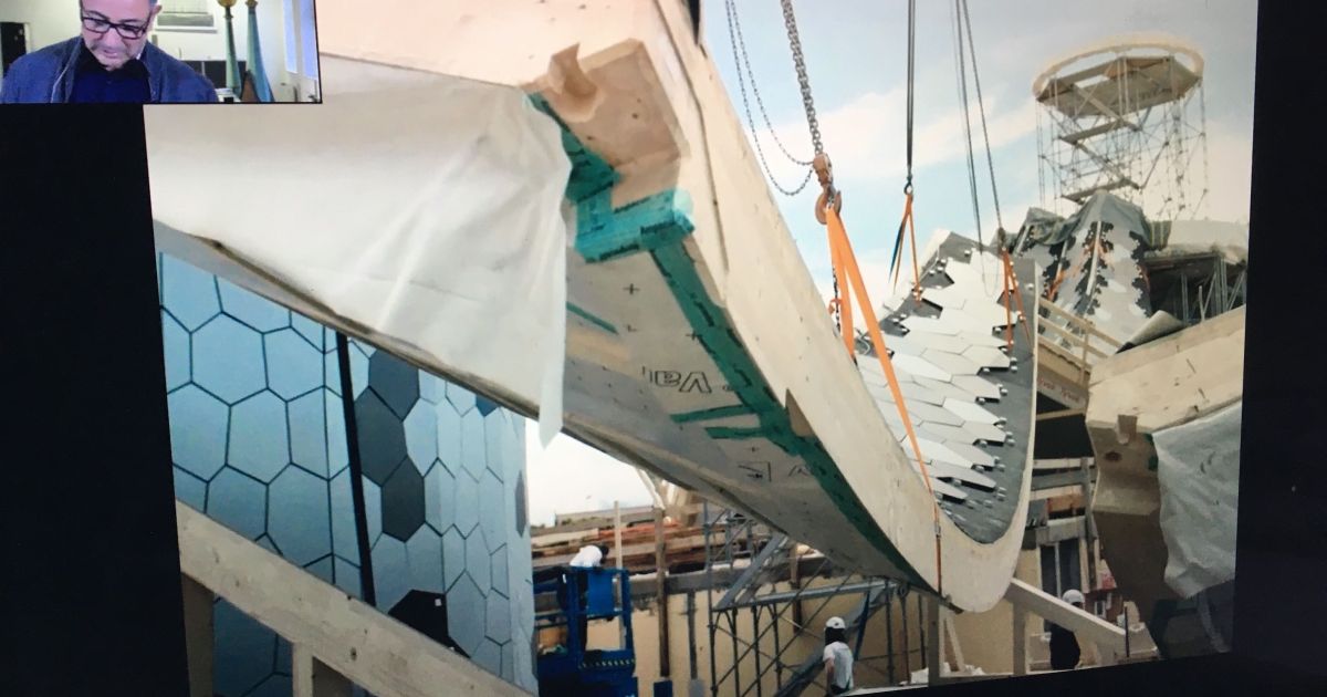 Auch im Holzbau bekleiden Metalle wirkungsvoll freie Formen. Screenshot: Christian Härtel
