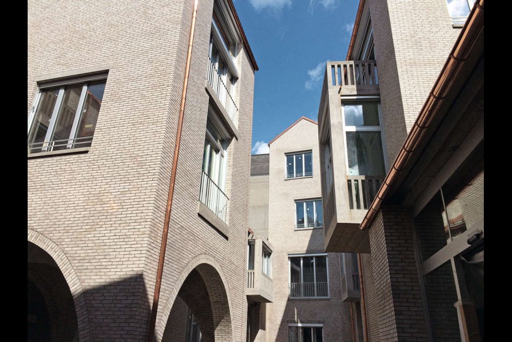 Alle Fenster der neu gebauten Einzelhäuser sind auf den Hof ausgerichtet. Zwar wurden die «gewachsenen» Fabrikbauten nach umfangreichen akustischen Erwägungen entfernt, aber «die ursprüngliche Hoffigur blieb die gleiche, weil bewährt», erklärt Architekt Lukas Buol beim Rundgang. Das Bauen nach historischem «Fussabdruck» ermöglichte eine individuelle Anpassung an Stadtbild und Betrieb und spiegelt sich auch in den 49 Proberäumen verschiedener Schallklassen wider.