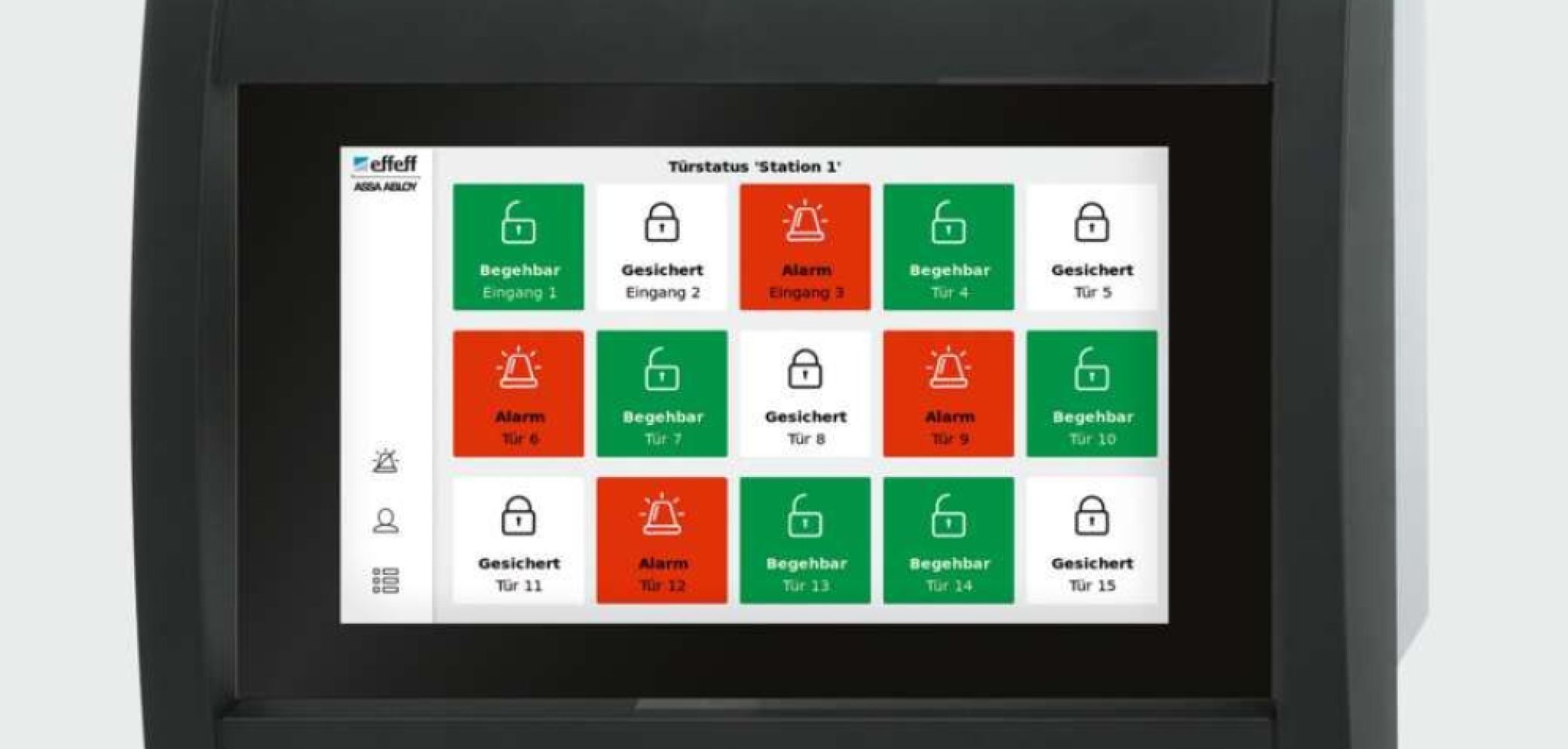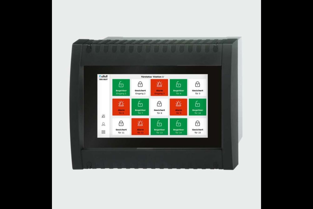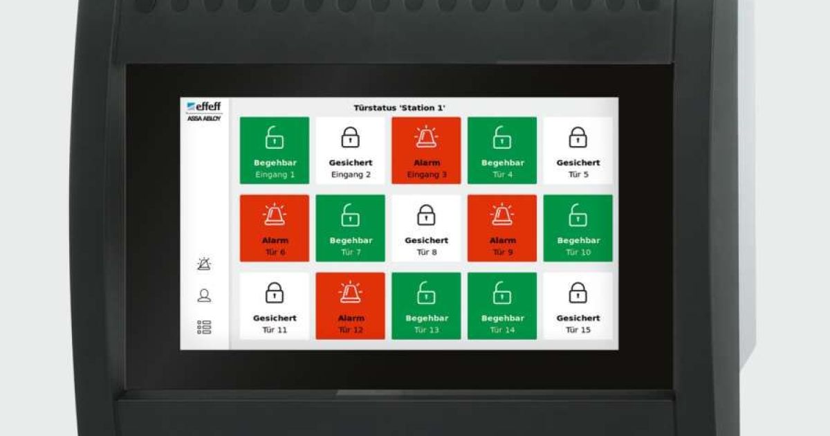 Das neue «Bedientableau 925» von Assa Abloy mit Touchdisplay erlaubt laut Hersteller die Anzeige und das intuitive Bedienen von bis zu 24 Fluchttüren oder Gruppenfunktionen. Insgesamt drei Displays mit 8, 15 oder 24 Buttons lassen sich einfach und flexibel konfigurieren. Hohen Nutzerkomfort bieten neben der kompakten und übersichtlichen Darstellung der jeweiligen Türsituation auch die Passwort gesicherte Steuerung der Türen.
