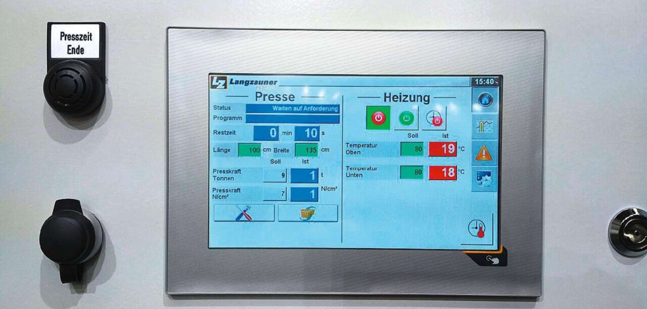 Touchscreens sind auch bei den Furnierpressen angekommen und bieten nette Funktionen. BIld: Arthur Bründler AG