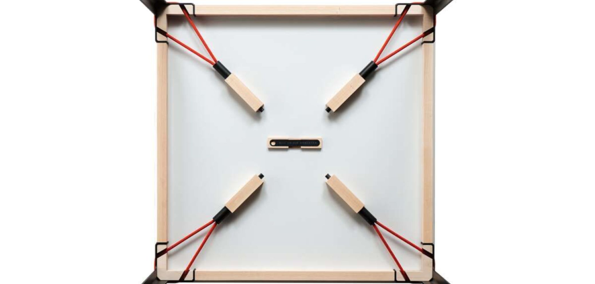 Der Blick unter die Platte legt den ausgeklügelten Spannmechanismus von Moormanns Seiltänzer-Serie offen. Bild: Nils Moormann