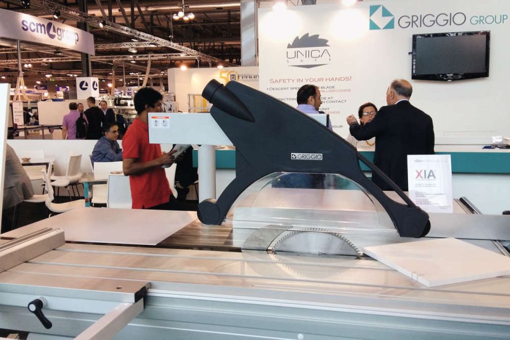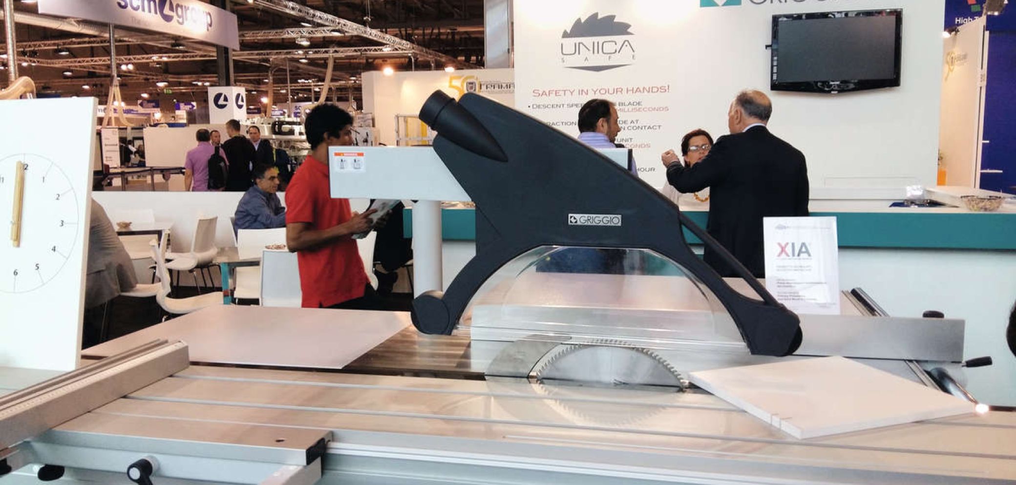 La «Unica Save» della ditta Griggio.com è una sega circolare squadratrice la quale possiede una lama che viene caricata sotto bassa tensione elettrica e quando la pelle tocca la lama il suo segnale elettrico cambia perché il corpo umano è conduttivo. Il cambio di segnale attiva il pistone con il sistema di sicurezza e dopo il contatto si allontana dal dito con una velocità di retrazione di 5 millesimi di secondo.
