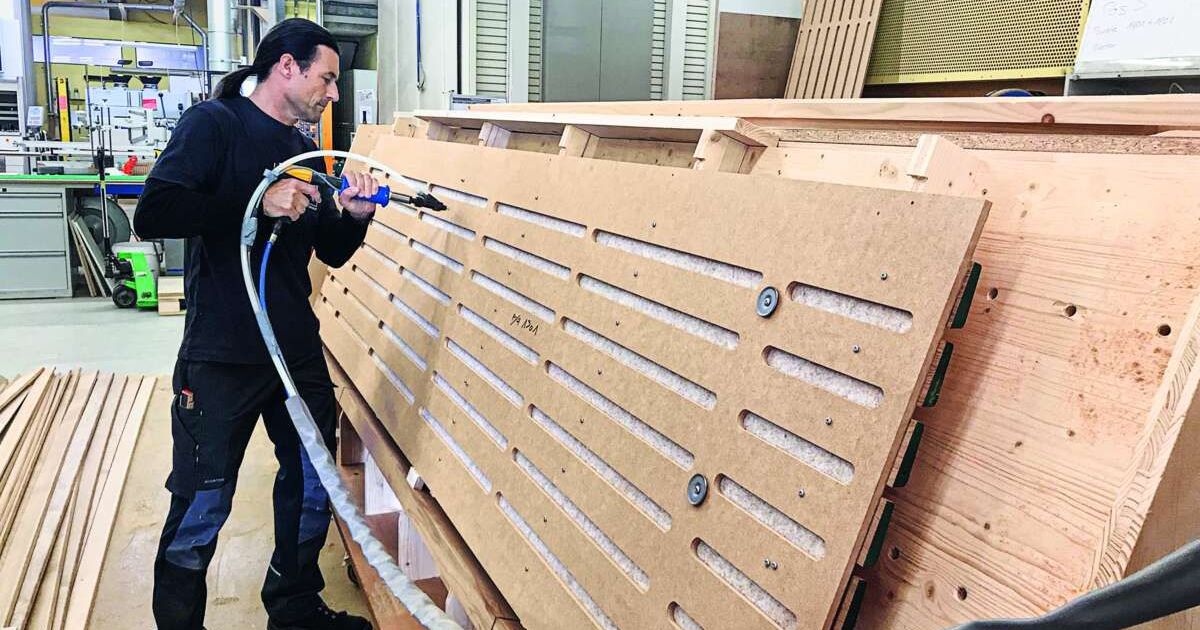 Gesagt, getan. Einen Tag lang stand der VSSM-Direktor in der Produktion in Schüpbach BE im Emmental, einen zweiten Tag begleitete er einen Monteur. Neben den Wandverkleidungen arbeitete er in der Produktion an einem zweiten Auftrag: Er gab Elementen den letzten Schliff, brach Kanten und leimte Dübel ein. «Am Abend habe ich schon gespürt, dass ich den ganzen Tag auf einem Werkstattboden gestanden bin. Das ist schon anders als im Büroalltag.»