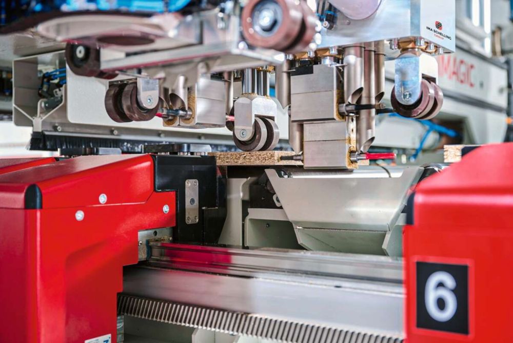 Egal, ob Bohren, Fräsen, Nuten oder Be- schlagsetzen: Die Durchlaufbohrmaschine «Imagic L1» von IMA Schelling lässt sich hinsichtlich der Art der Bearbeitung, des Bearbeitungsumfangs und der geforderten Leistung individuell an alle Kundenanforderungen anpassen. Möglich machen dies Standardmodule, die über eine Länge von bis zu drei Bearbeitungsbrücken applikationsspezifisch zusammengestellt und ergänzt werden können.