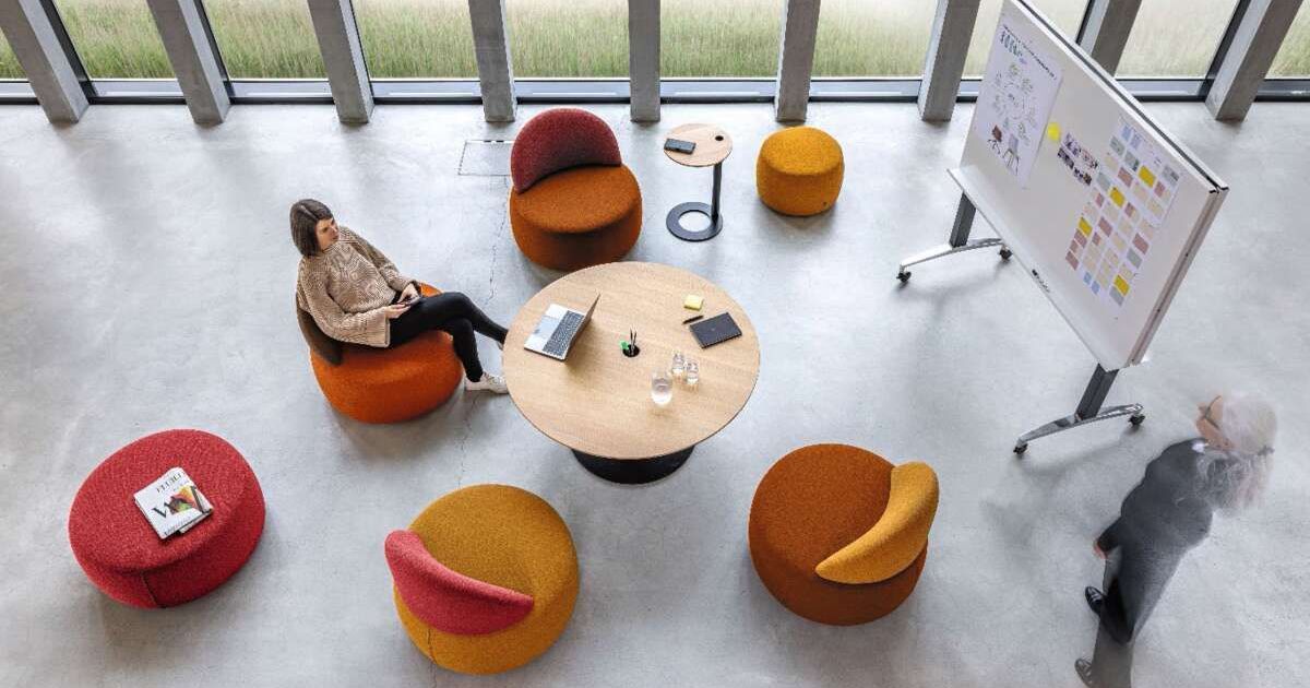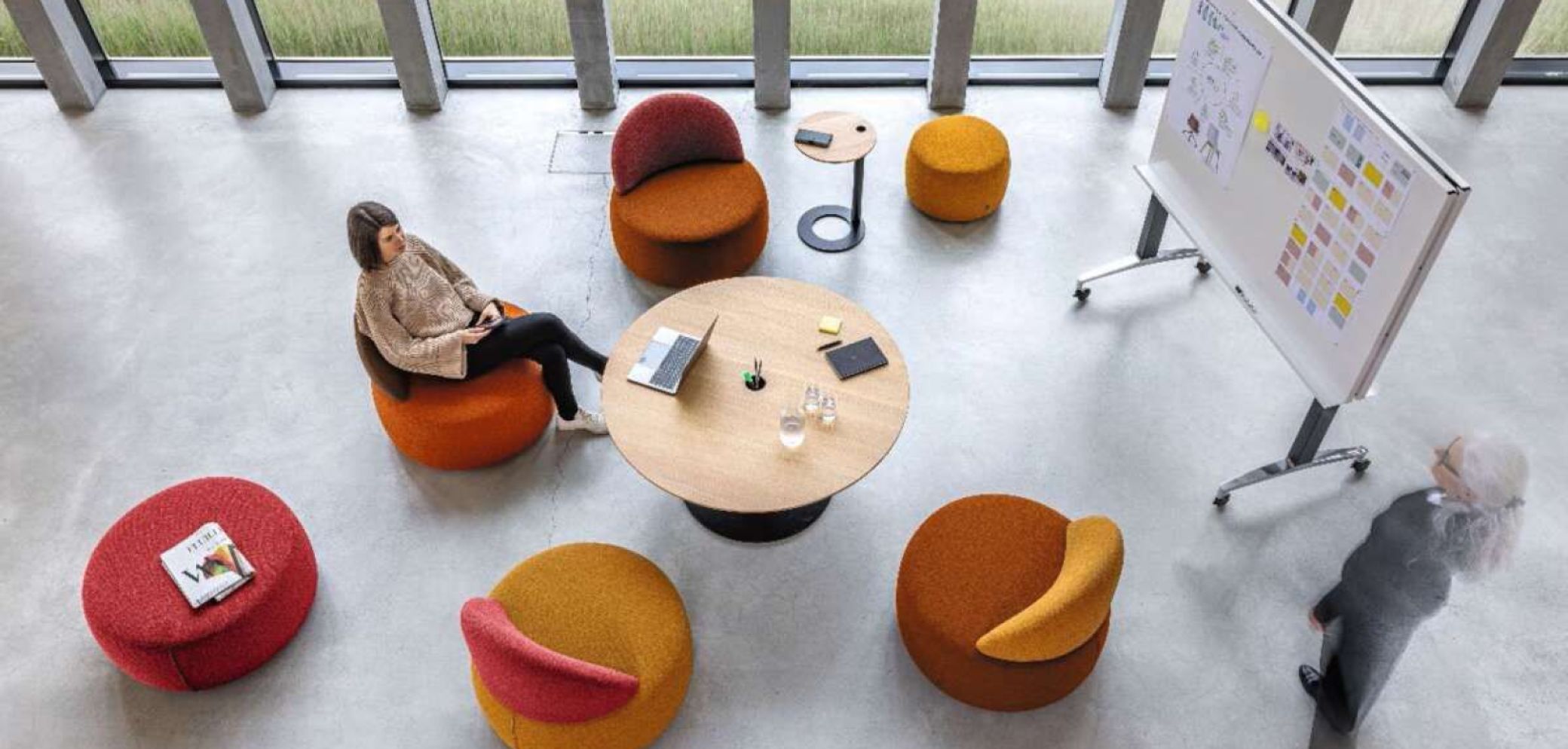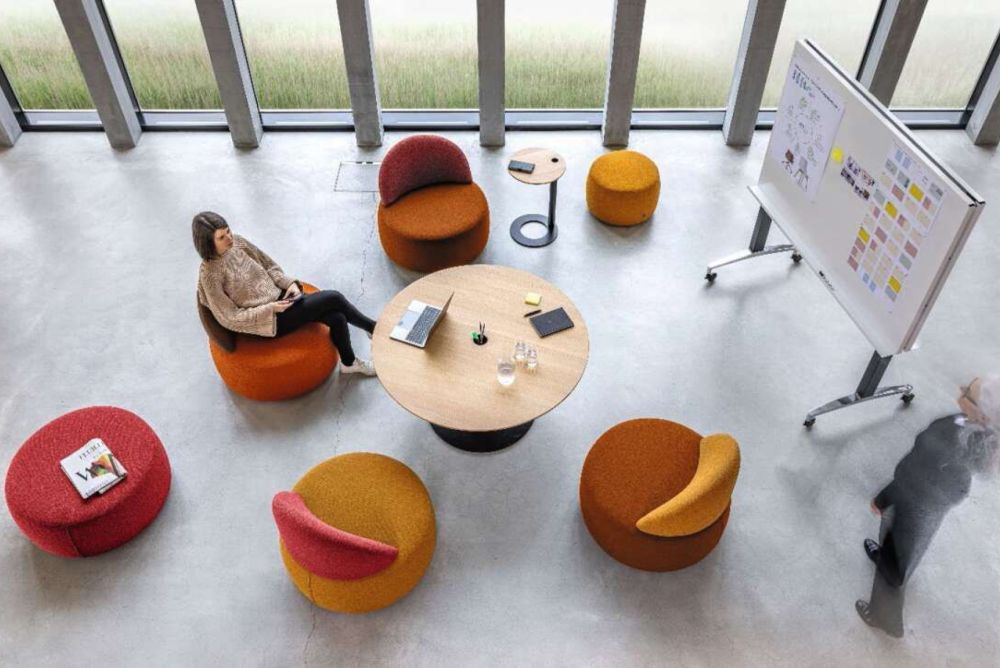 «Incycle» ist ein neues Soft-Seating-Programm von Girsberger. Es ist konsequent an die Anforderungen der Kreislaufwirtschaft ausgerichtet und besteht zu 90 bis 95 % aus gebrauchten und recycelten Materialien. Das Design stammt von Mathias Seiler. Grundmodul des Programms ist ein rundes Pouf-Element – wahlweise mit oder ohne Rückenlehne. Ergänzend gibt es kleine Poufs oder solche mit eingelassenen Tischplatten. Dank Rollen an der Unterseite lässt sich «Incycle» schnell und individuell neu gruppieren und eignet sich ideal für informelle Teamarbeit, Kollaboration, dynamische und kommunikative Mittelzonen und Aufenthaltsbereiche.