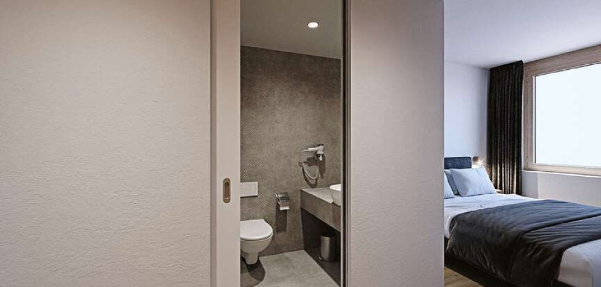 Mit dem «Hawa Porta Acoustics» hat Hawa einen Alleskönner unter den Schiebe-beschlägen, denn er dämpft die Schallübertragung um bis zu 39 dB und schützt zudem mit einer gut überlegten Rundumdichtung vor Zugluft, Gerüchen und Lichteinfall. Mit minimalen Einbaumas-sen lässt sich der Beschlag schnell und einfach in Taschen oder vor der Wand montieren. Für Vorwand- wie für Taschenlösungen ergänzt das identische Dichtungs-Set die Systemkomponenten des «Hawa Porta 60/100 HMD/HMT». Eine Push-to-open-Bedienung mit Dämpfeinzug sorgt beim «Hawa Porta 100 HMT Acous-tics» für viel Bedienkomfort. Dank der Kraftumlenkung der Horizontaldichtung läuft auch das Öffnen und Schliessen ruhig ab. Der Beschlag überzeugt optisch, da die ganze Technik inklusive Schalldämmung unsichtbar bleibt. Die Türbearbeitung ist einfach, denn es lassen sich Standard-Türblätter verwenden; die Türen können auch nach der Bauvollendung eingesetzt werden, und man hat jederzeit Zugriff auf den Beschlag.
