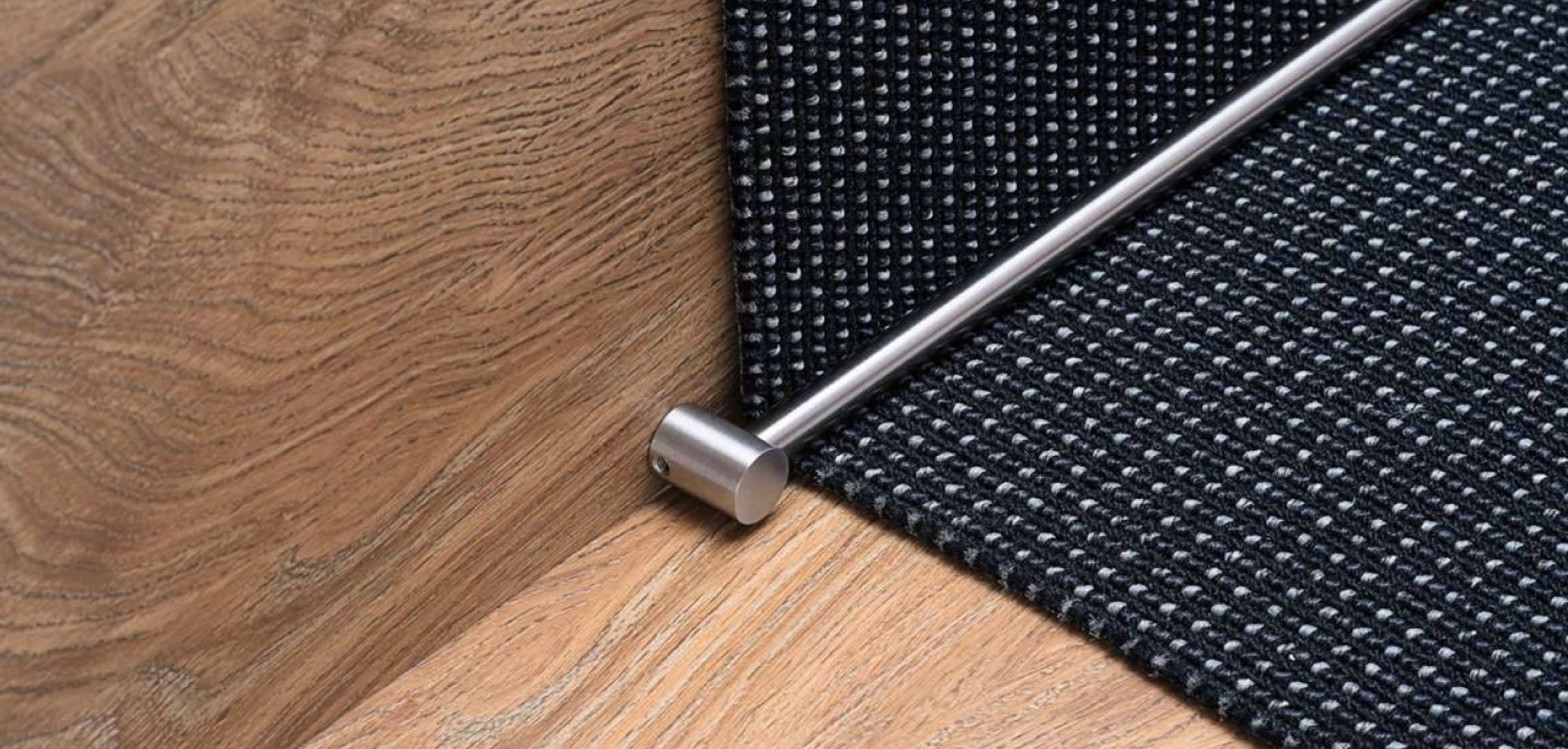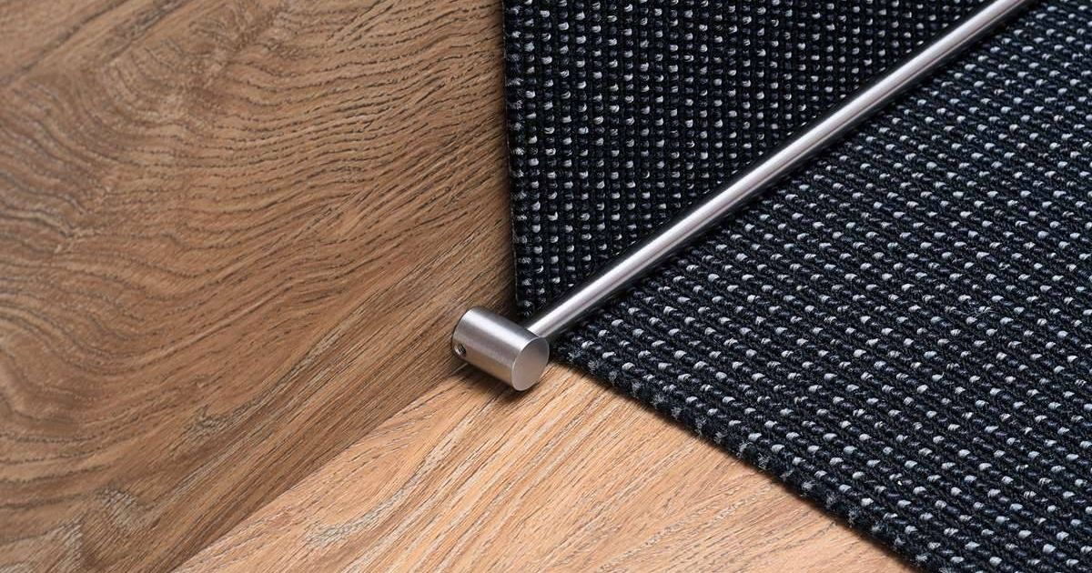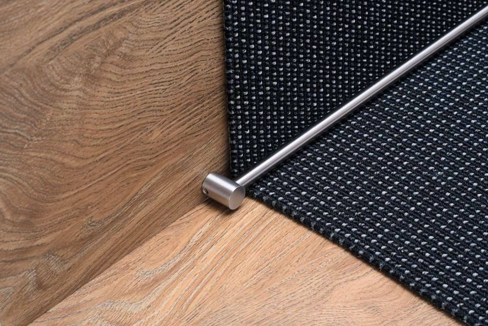 Schadegg führt in seinem Sortiment hochwertige Treppenstangen aus Edelstahl in einer klaren und modernen Erscheinungsform. Die Garnituren, mit denen Teppichläufer auf Treppen fixiert werden, vervollständigen das Angebot an Bodenprofilen. Ästhetisch und technisch durchdacht, überzeugen die massiven Garnituren mit Stangen von 10 mm Durchmesser. Sie sind in den Oberflächen Edelstahl gebürstet sowie Edelstahl poliert erhältlich und können mit verschiedenen Ösen kombiniert werden. Zudem besteht daneben ein Sortiment in Messing glanz und Nickel glanz.