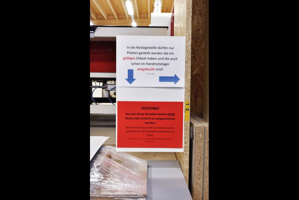 Das manuelle Lager erfordert allerdings grosse Disziplin von allen Mitarbeitern. Wird einfach ein Rest aus dem Regal genommen, ohne diesen mit dem Lesegerät «abzuschiessen» und somit aus dem System zu buchen, entsteht beim Zuschnitt ein Problem. Aber auch für diesen Umstand gibt es eine einfache Lösung: Der Maschinist kann ab und zu einige Abschnitte direkt ausbuchen und in ein separates Fach stellen, aus dem man sich ohne Weiteres bedienen kann.