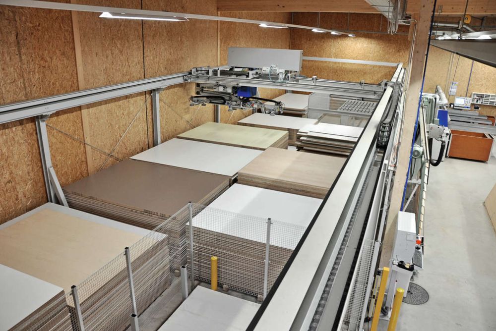 Plattenlagerung. Beinahe jeder Maschinenhersteller hat sie mittlerweile im Angebot: automatisierte Säge-Lager-Kombinationen. Die SchreinerZeitung hat bei Schreinereien und Experten nachgefragt, was es damit auf sich hat, und nennt zwei konkrete Beispiele.