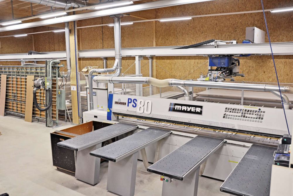 Bei der Wahl der neuen Anlage war für das Unternehmen der Maschinenlieferant eigentlich schon gesetzt. «Wir setzen schon lange auf Maschinen von Homag und wollten auch in diesem Bereich alles aus einer Hand», erklärt Jakob. Nicht klar war allerdings die Durchführbarkeit des ganzen Unterfangens: In der Zuschneiderei beträgt die Raumhöhe gerade mal 2,62 m, im Bereich der Säulen sogar nur 2,22 m.