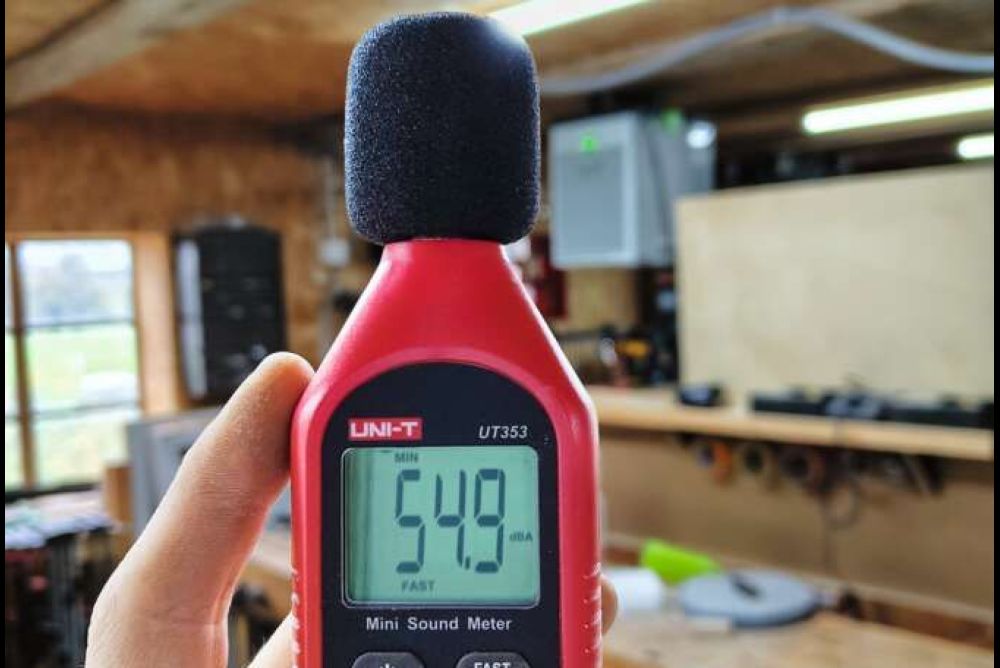 Ein Punkt, den ich noch ansprechen möchte, ist die Lautstärke des Gerätes. Diese ist für die allermeisten Arbeitssituationen völlig in Ordnung, und bei laufenden Maschinen oder laufender Absauganlage ist der Luftreiniger ohnehin nicht zu hören. In einem kleinen und ansonsten stillen Raum kann der Lärmpegel wohl auch mal als störend empfunden werden. An das gleichmässige Geräusch gewöhnt man sich aber schnell, wie ich finde. Die 55 bis 65 dB, mit denen Festool den Lärmpegel des «SYS-AIR M» angibt, sind vergleichbar mit einem Kühlschrank (55 dB) oder einem Gespräch in einem belebten Café (65 dB). Wie ich festgestellt habe, variiert der Lärmpegel auch leicht je nach Standort gegenüber dem Gerät. In direkter Richtung zum Luftauslass und bis etwa zwei Meter Abstand zum Luftreiniger hat mein Schallpegelmessgerät gar etwas mehr als die 65 dB angezeigt. Natürlich kann hier aber auch die räumliche Situation einen Einfluss auf das Messergebnis haben.