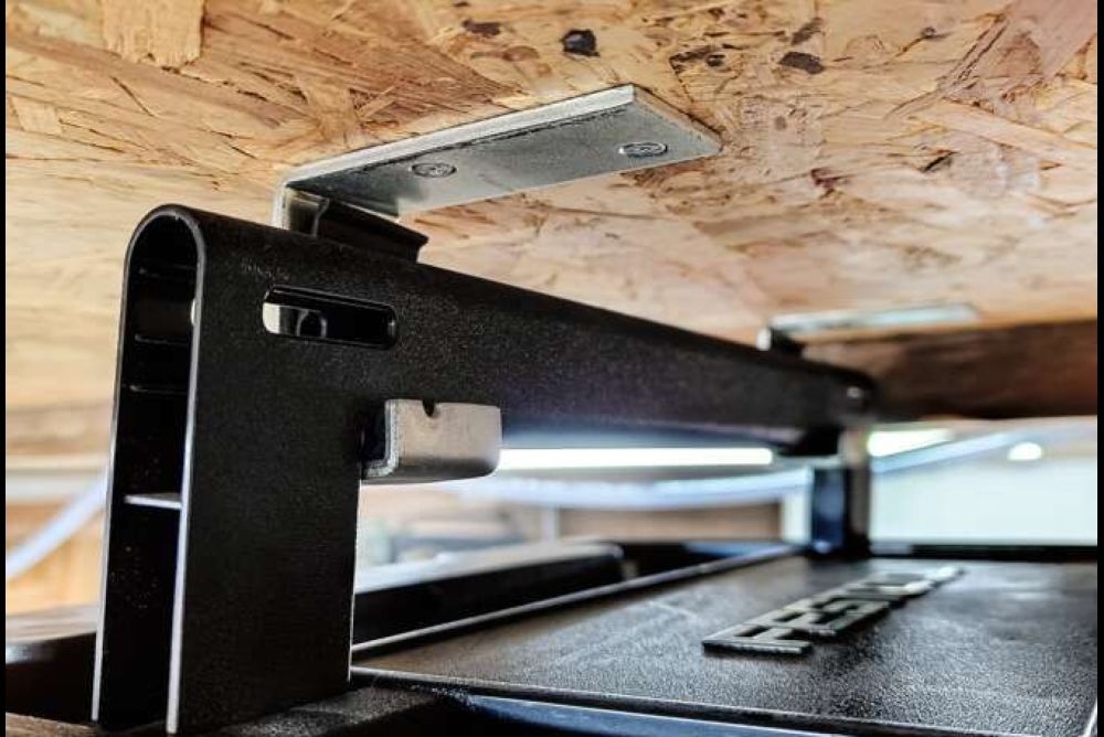 Zur Montage an der Decke bietet Festool eine Deckenhalterung als optionales Zubehör. Ich habe mir hierfür zwei Montagewinkel zurechtgebogen und den Luftreiniger am Systainergriff aufgehängt. Das funktioniert aus meiner Sicht genauso gut.