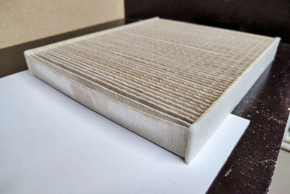 Der Hauptfilter zeigt sich nach seinem 70-Stunden-Arbeitseinsatz noch sehr frisch, ohne sichtbare Staubablagerungen. Somit hat der Vorfilter wohl seinen Zweck erfüllt und den Grossteil der Staubpartikel aufgefangen. Wie viel Staub das ist, zeigte sich beim Ausschütteln des Filters und hat mich dann doch etwas überrascht. Denn auch der Vorfilter hat nicht den Anschein gemacht, an seiner Kapazitätsgrenze zu sein. Die Staubmenge, die sich dennoch in den Filterlamellen gesammelt hat, fand ich durchaus eindrücklich.