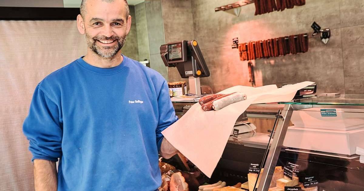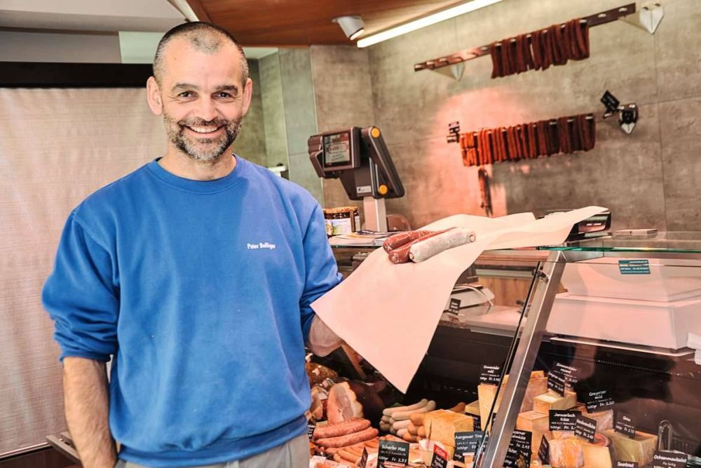 Beim Familienbetrieb seines Vertrauens, der Metzgerei Klauser in Uerkheim AG, kauft Peter Bolliger (51) am liebsten Blut- und Leberwürste. Bild: Franziska Herren