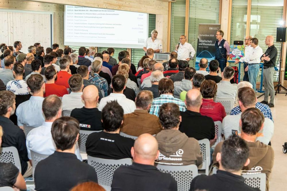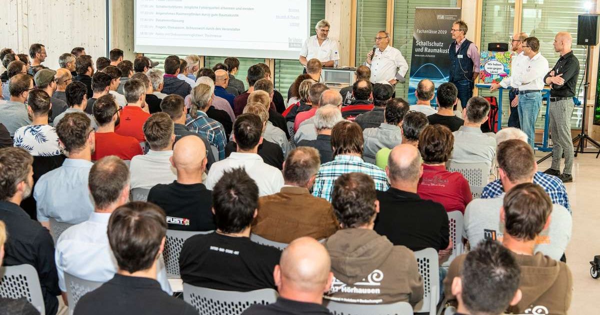 VSSM-Fachanlässe. Die Veranstaltungsserie des VSSM zum Thema Schallschutz und Raumakustik ist vor Kurzem sehr erfolgreich zu Ende gegangen: Total 1160 Schreinerinnen und Schreiner haben die 14 Standorte besucht und sich von Experten auf den neusten Stand bringen lassen.