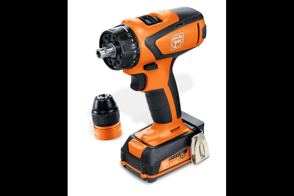 Der 4-Gang-Akku-Bohrschrauber «ASCM 12 C» von Fein ist laut Hersteller der einzige 12-Volt-Schrauber mit 4-Gang-Getriebe am Markt und liefert die höchste Motorleistung in dieser Klasse: Mit dem bürstenlosen «PowerDrive»-Motor erreicht er eine Drehzahl von bis zu 2500 Umdrehungen pro Minute. Der Schrauber ist ergonomisch zu greifen und kann kipp-sicher abgestellt werden. Er verfügt über ein robustes Vollmetall-Bohrfutter, eine Spannkraftsicherung hält die runden Bohrerschäfte zuverlässig und verhindert ein versehentliches Öffnen. Eine magnetische Bit-Garage ist neben einem Gürtel-haken im Lieferumfang enthalten.
