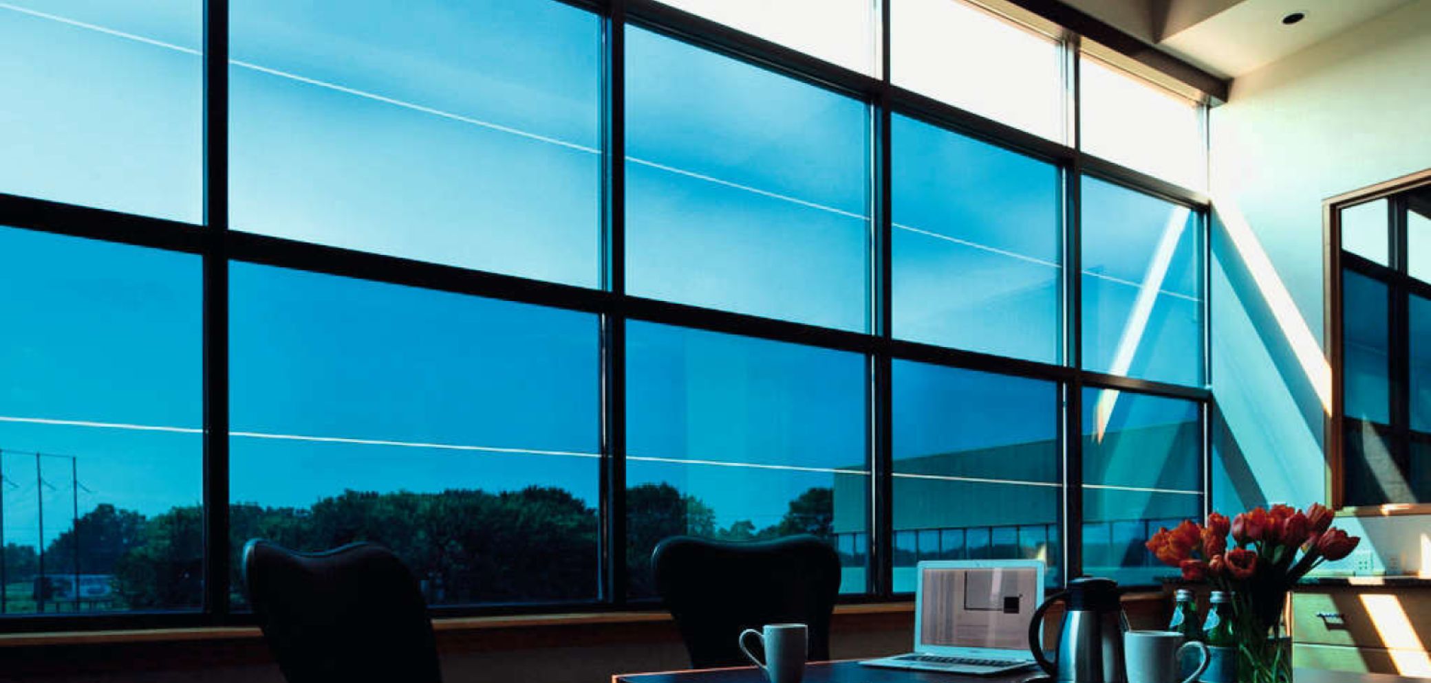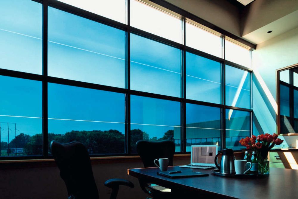 Mit «SageGlass» steht von Saint-Gobain ein intelligentes Sonnenschutzglas zur Verfügung, das sich tönen lässt, dabei den Wärmeeintrag sowie Energie- und Unterhaltskosten senkt und in jedem Zustand freie Sicht nach draussen garantiert. Das elektrochrome Glas kann völlig geräuschlos elektronisch verdunkelt oder aufgehellt werden – bedarfsgenau entweder automatisch oder manuell per Knopfdruck oder Touchscreen. Es ist nicht nur eine Alternative zu Jalousien, Lamellen und Rollos, sondern bietet neue Ansätze in puncto Fassadendesign. Damit sich das Glas nahtlos in eine bestehende Konstruktion und Umgebung einfügt, kann die Farbe des äusseren Glases individuell abgestimmt werden. Als Standard gibt es die vier Farben «Classic», «Blau», «Grau» und «Grün». Die Lichtdurchlässigkeit lässt sich über vier Stufen zwischen 1 % und 60 % regulieren. Mit dem Steuerungssystem und Lichtsensoren lässt sich der Sonnenschutzfaktor von Fenstern sowie Fassaden durch die dynamische Regulierung vollautomatisch der aktuellen Tageslichtsituation anpassen.