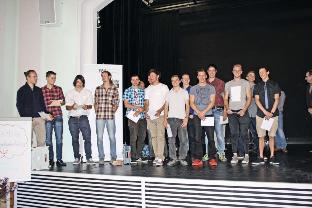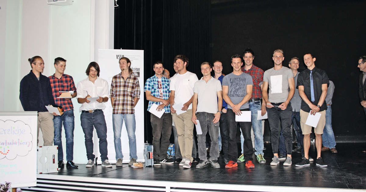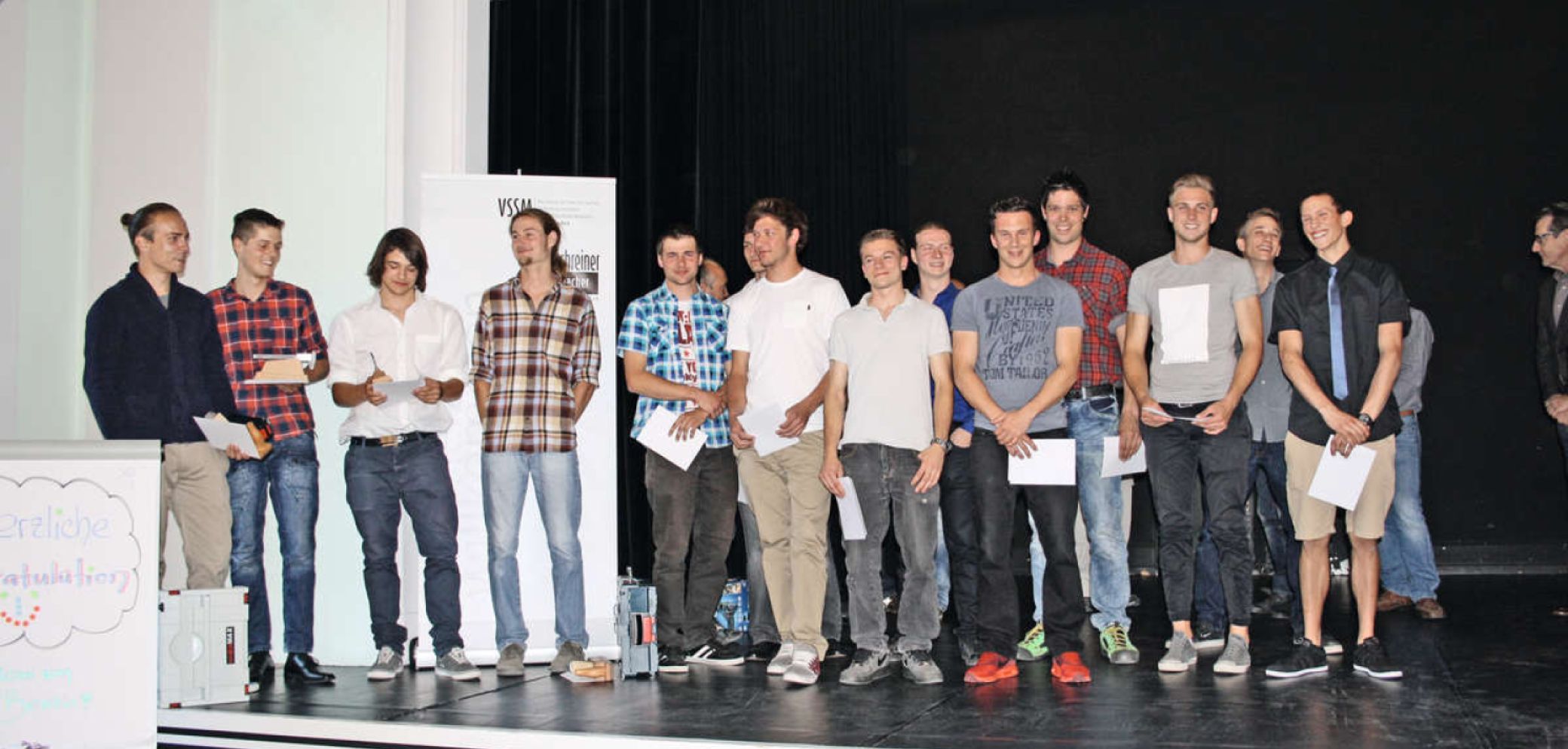 An den Lehrabschlussfeiern der Gewerblichen Berufsschulen Chur, Ilanz, Davos, Samedan und Poschiavo durften alle 52 Kandidaten ihre Fähigkeitsausweise und Atteste in Empfang nehmen. 39 Schreiner und 6 Schreinerinnen beendeten damit ihre vierjährige Lehre und erhielten das eidgenössische Fähigkeitszeugnis. Zudem schlossen sechs junge Männer und eine Frau die zweijährige Lehre zum Schreinerpraktiker mit eidgenössischem Berufsattest ab (im Bild unten die Absolventen Schreiner EFZ der GBC Chur) . Prüfungsresultate mit Note 5 und höher wurden mit einer Schieblehre, einem Hobel oder einem gravierten Hammer ausgezeichnet. Mit der Gesamtnote von 5,4 erreichte Jonas Deck (Schreiner EFZ) aus dem Prüfungskreis Chur/GBC Chur die Schreiner-Bestnote im Kanton Graubünden. Die beste Note der Schreinerpraktiker EBA schafften Duri Grass und Jessica Köchle mit 5,4.