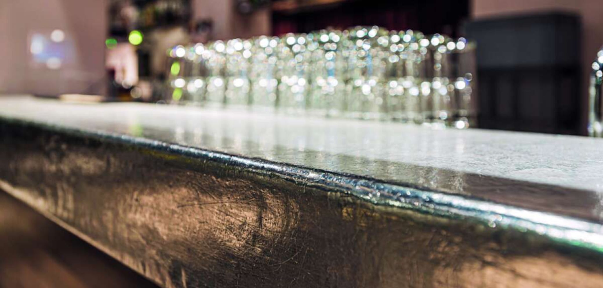 Ebenfalls für Abdeckungen bei Theken und auch für Küchen kommt Zink zum Einsatz.